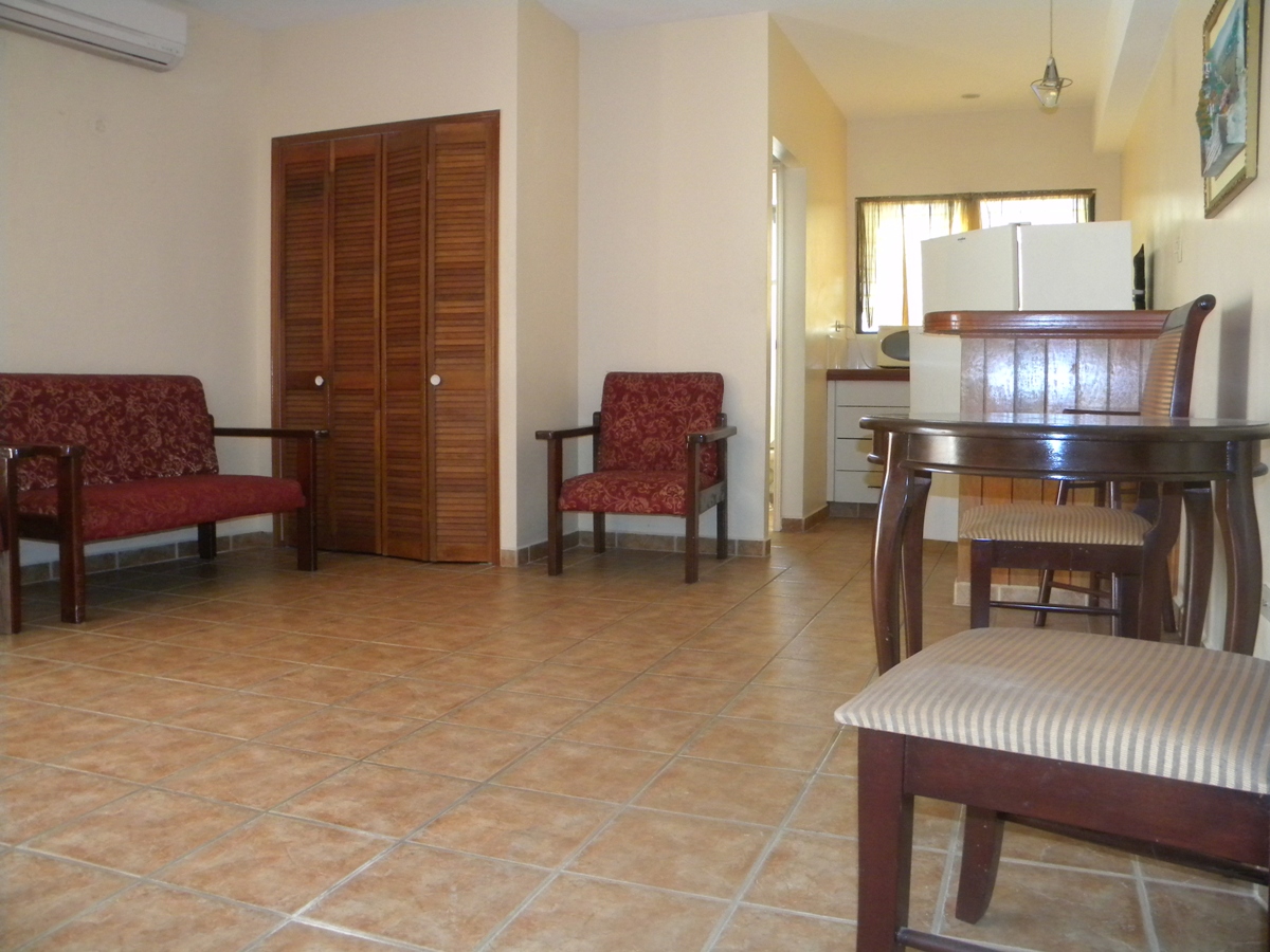 Beautiful fully furnished studio apartment for rent in the heart of Belize City. This studio apartment is located on the fourth floor and has an open dining, kitchen, living and bedroom. It does have a compact bathroom. The studio includes all of the following.