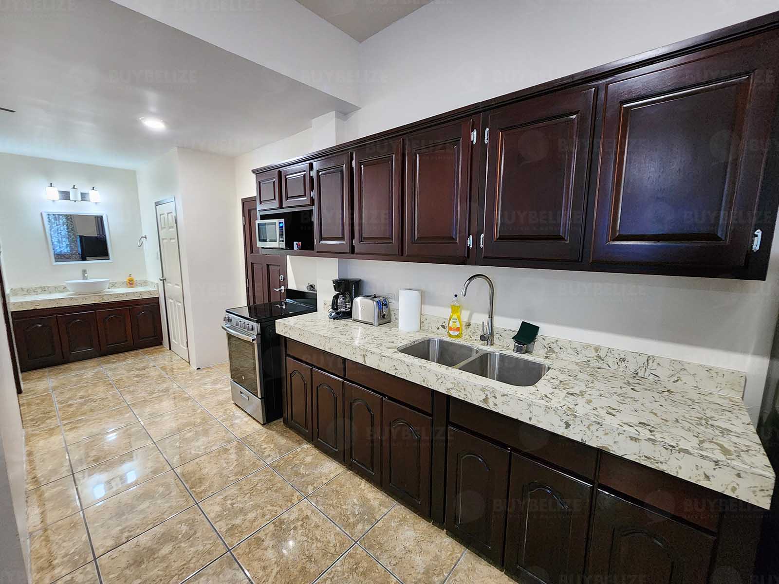 Great 2,100 sq ft commercial/office space located on the Western Highway in Belize City. This ground is divided into 5 different spaces. The doors open up into an open space of roughly 700 sq ft with a private office and a male and female restroom. Behind this open space has 3 additional office rooms that are separated by a door with each measuring 400 sq ft each. The downstairs also has access to a full bathroom that is located at the very back of the building.