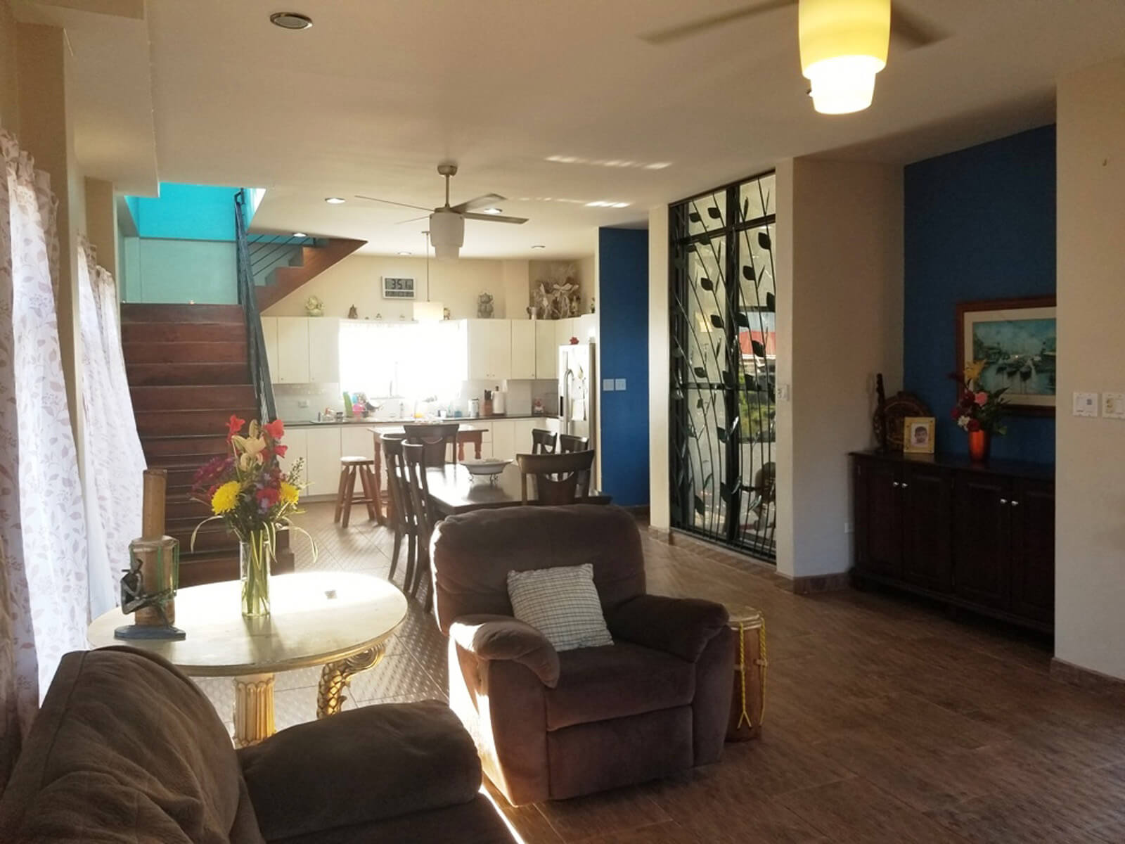 Buy Belize Management Ltd. proudly presents a large modern 3 bed 3 bath house for rent in the beautiful neighbourhood of West Landivar, Belize City. The house is located in a large fully fenced property that has a lot of selected plants and trees. There is also a driveway with a carport that can fit three to four vehicles.