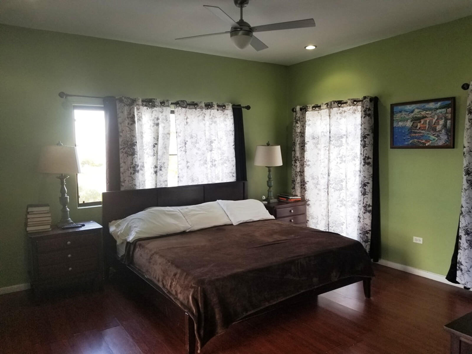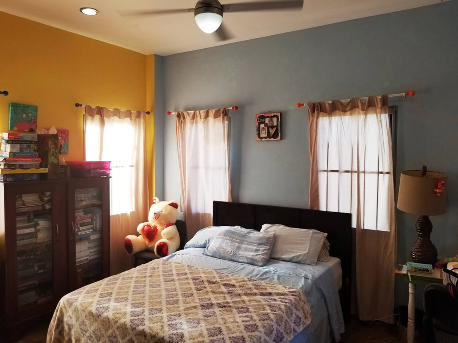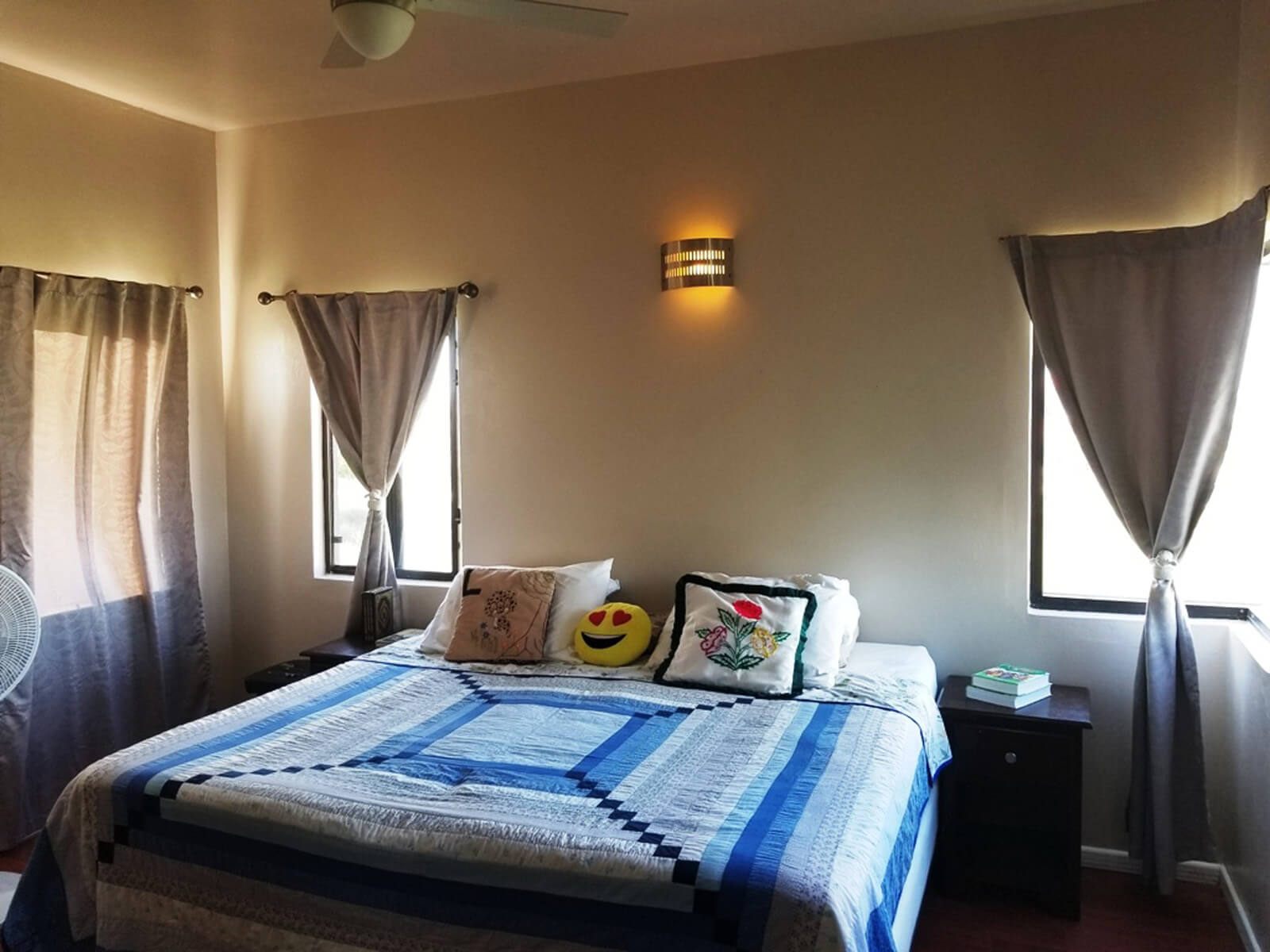 Up the flight of stairs to the 1st floor there is the large master bedroom with closet space, private master bath and access to a large balcony with amazing views of the neighbourhood. The second bedroom is large enough to fit a king-size bed and has its own closet and access to a private bathroom. In addition, the house has hot and cold water, and is monitored by security cameras.