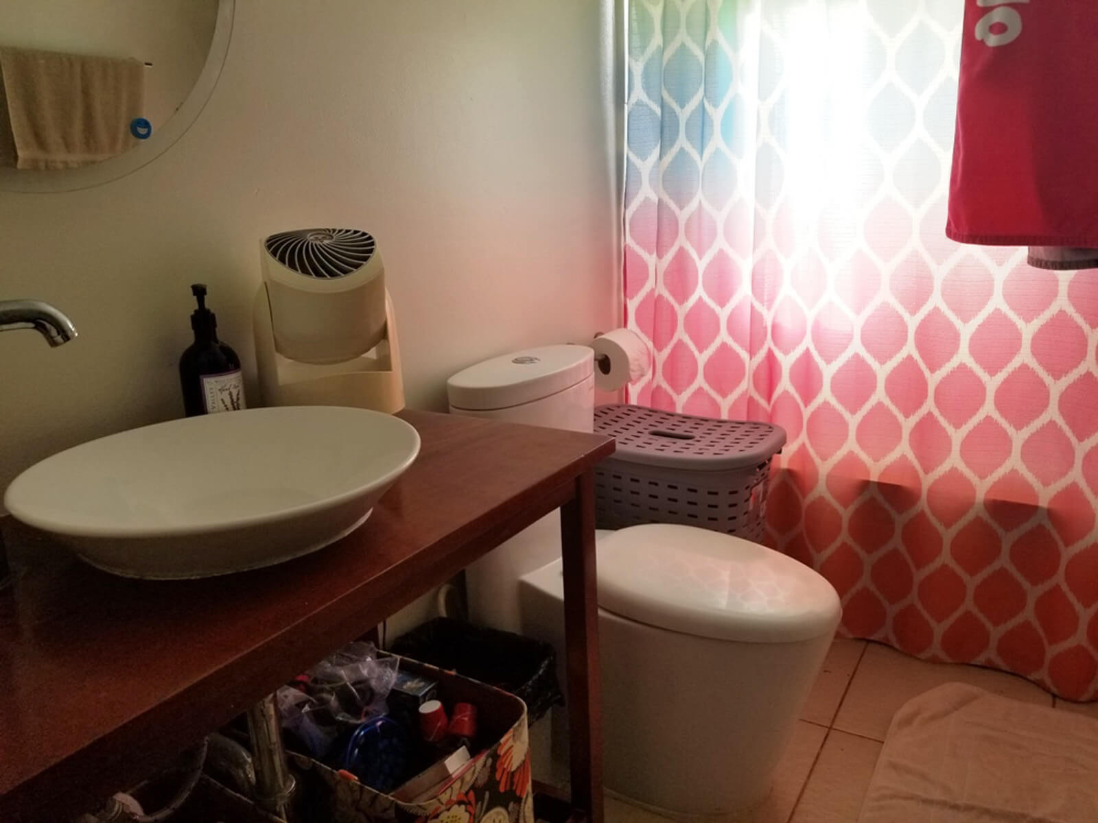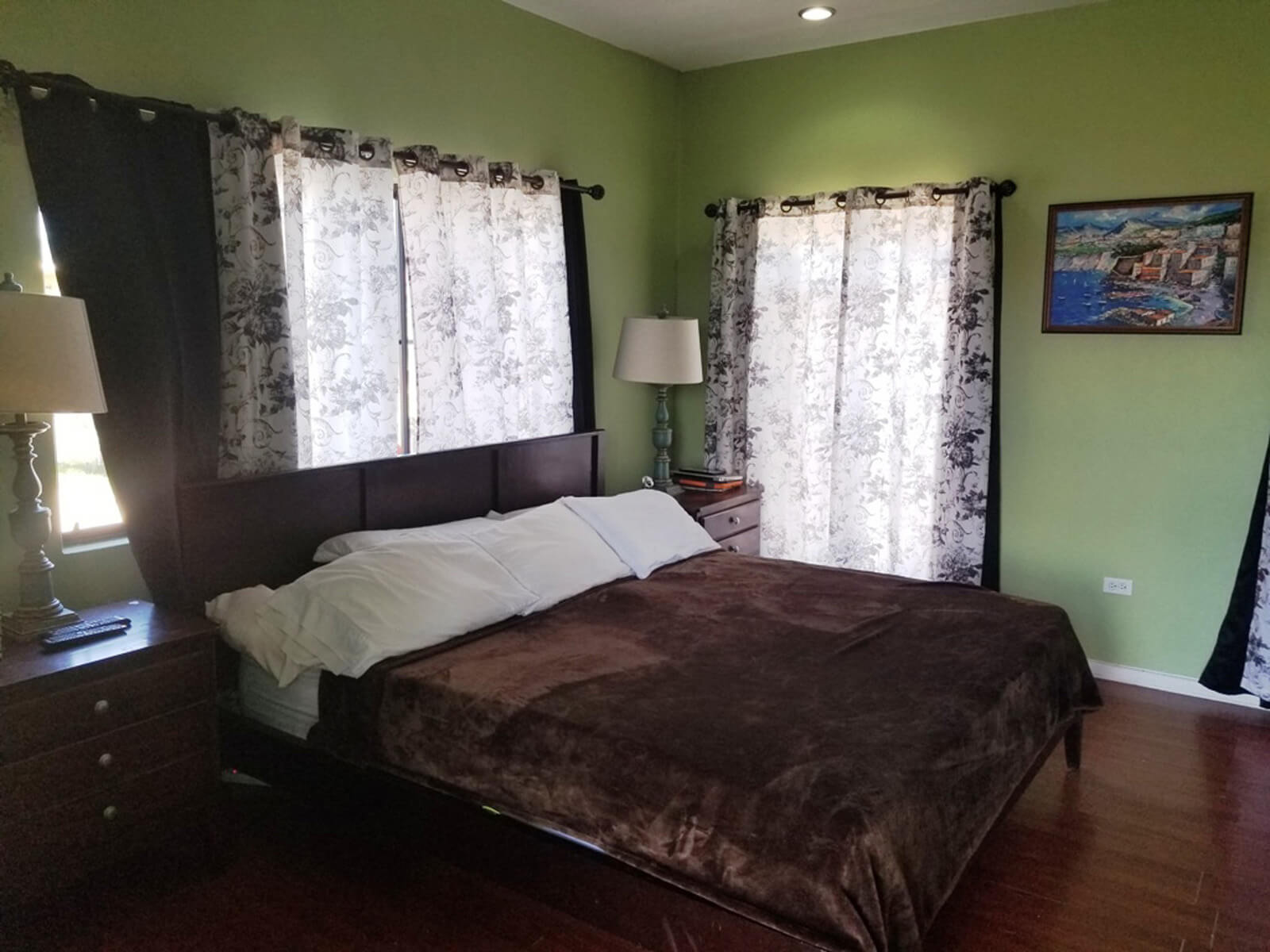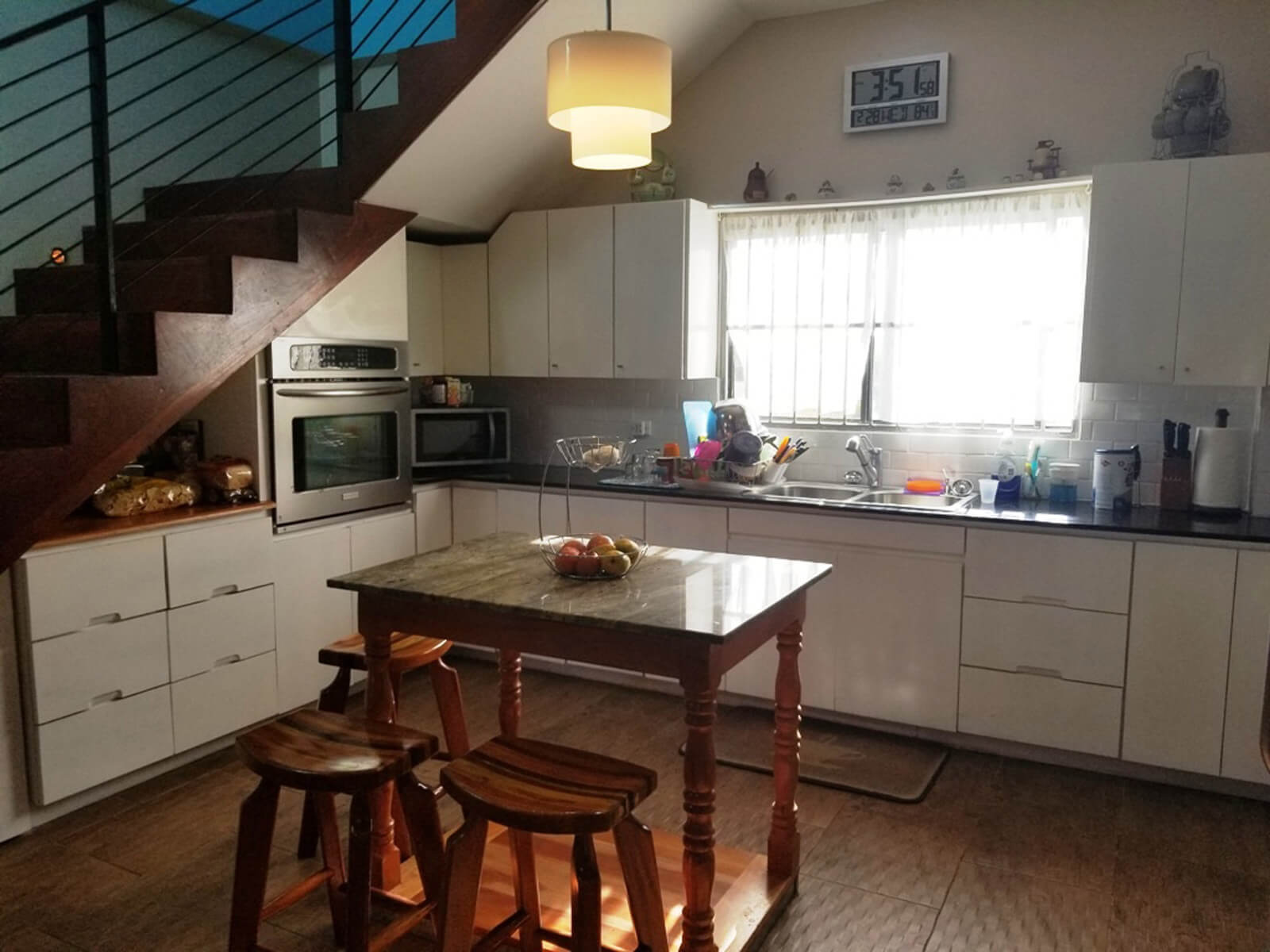 Up the flight of stairs to the 1st floor there is the large master bedroom with closet space, private master bath and access to a large balcony with amazing views of the neighbourhood. The second bedroom is large enough to fit a king-size bed and has its own closet and access to a private bathroom. In addition, the house has hot and cold water, and is monitored by security cameras.