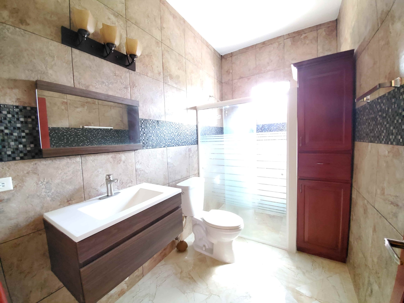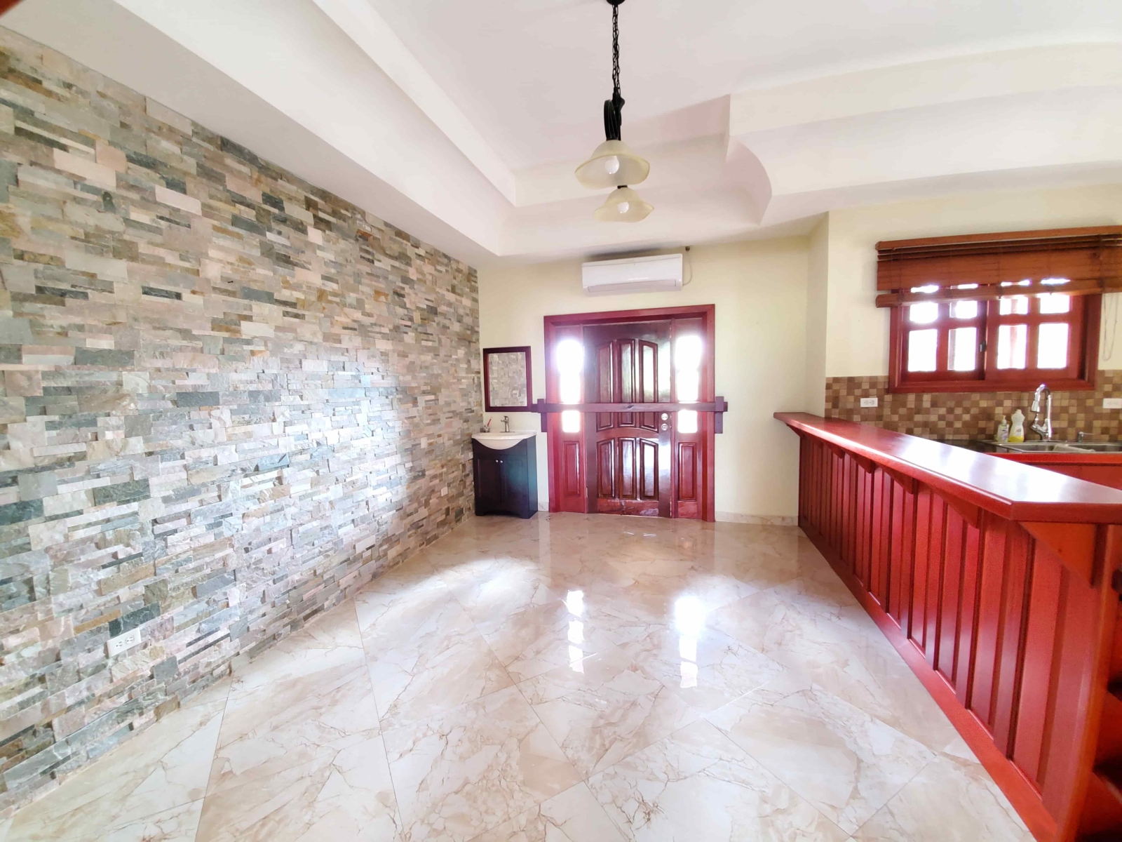 This lovely home includes an artistic and stunning design for the living room and dining room. Includes fully tiled and elegant bathrooms and a lovely kitchen with wooden countertops. The home also has a spacious front that can include 2 or more cars that can be parked. The bedrooms include both AC units and ceiling fans that are quite helpful especially for those hot and sunny days within the year. A laundry room is included as well that can house both the washer and dryer and can include a sink basin as well. The home also has a storage room which includes shelves within as well that can be used to store multiple items.