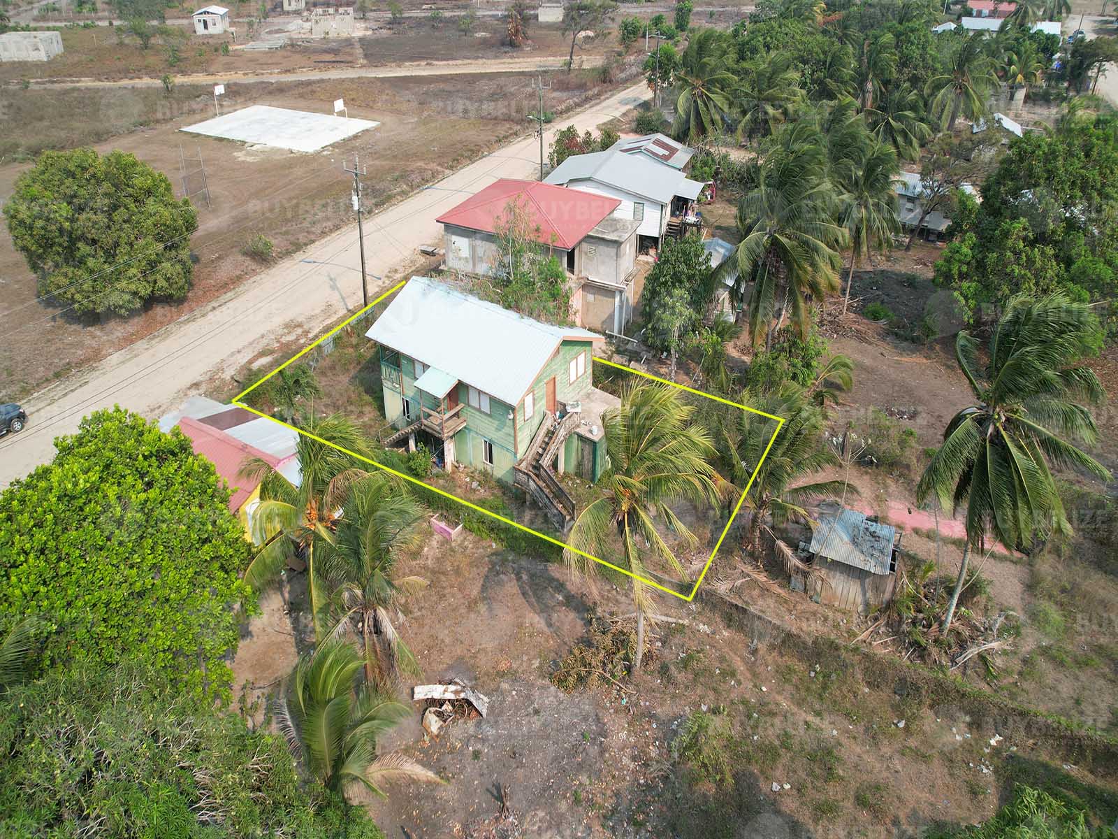 Buy Belize Real Estate is pleased to offer for sale this gorgeous property located in the beautiful village of Independence, Stann Creek District. The property measures approximately 50 feet x 100 feet. On this property, a two-story building sits on it. The house would require some renovations and can be refurbished to your liking. The house comprises a two-bedroom, one-bathroom apartment on the lower level, while the upper level has a three-bedroom, one-bathroom apartment.