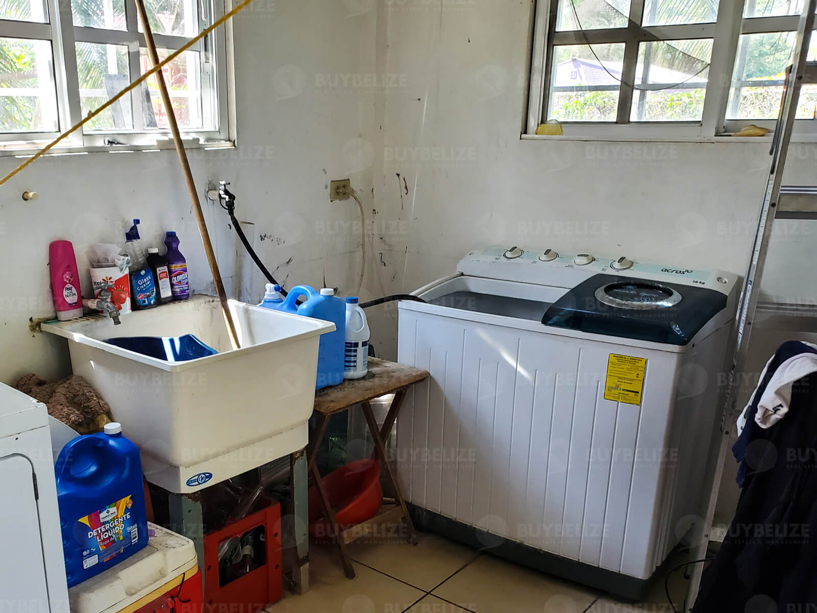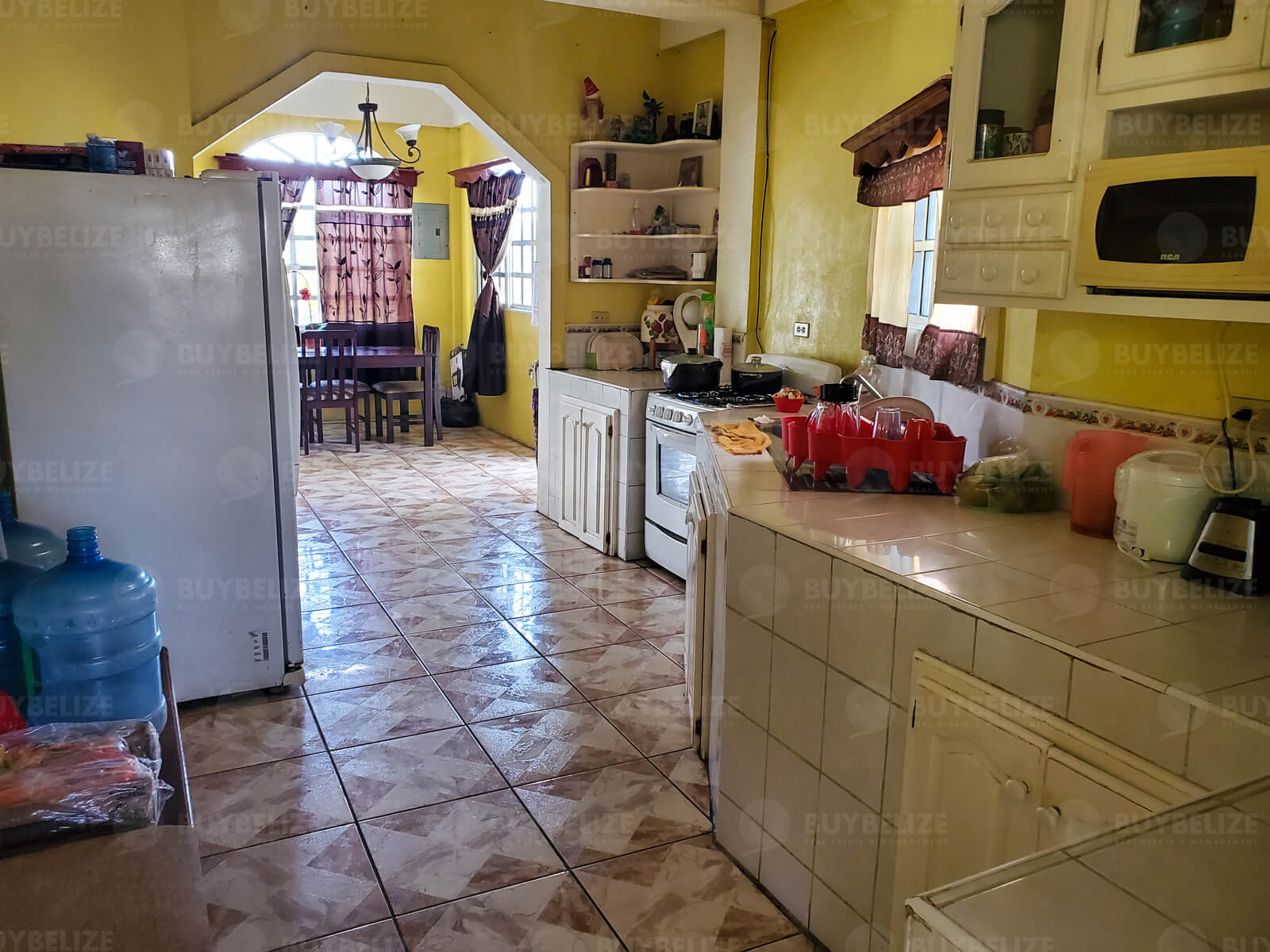 Buy Belize Real Estate LLP presents a 3 bed 2 bath house for sale located in Orange Town. The house is complete with an open kitchen, dining, living and laundry area. It also consisted of a cement driveway and the entire property is fully fenced with a variety of plants and trees. The lot on which the house sits on is a large corner lot that measure approximately 9,482 sq. ft. with an estimated 196 ft. of road frontage. The house has a flat cement roof where an addition can be built and provide more living space or an extra income.