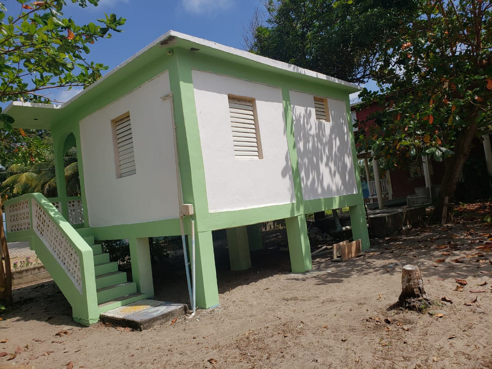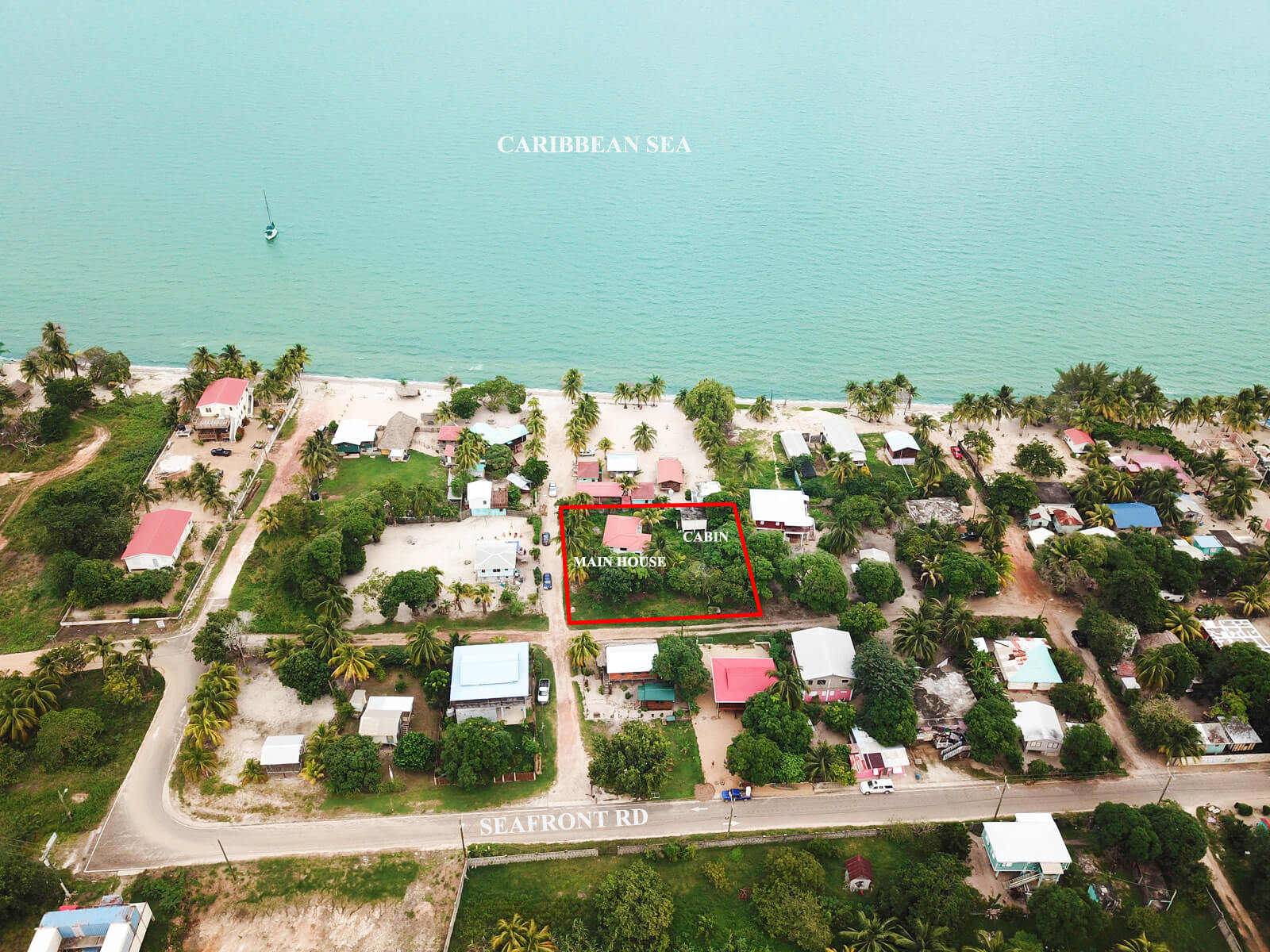 Buy Belize Real Estate is pleased to offer this income-earning sea-view property in Hopkins Village. This property consists of two lots measuring 50ft x 120ft each. The property has a main upper wooden house which consists of one bedroom, one bathroom, and an open dining, kitchen, and living room and a concrete cabin with a studio-type concept. The dimensions of this large sea-view property is 100 feet by x 120 feet which offers you plenty of space for expansion and to build a swimming pool where you can relax and enjoy the tropical weather. The downstairs of this house has a utility/storage room for washer and dryer. This property has access to all amenities and is a two-minute walk to the crystal clear sandy beach.