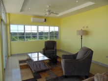 This is a beautiful fully furnished 1 Bed 1 Bath apartment on the 5th floor on the north side of Belize City. This apartment has an open dining, kitchen and living room. The kitchen is large and equipped with fridge, stove, and other kitchen appliances. The living room is large and has a beautiful view of the Caribbean Sea. The living room is equipped with a 3 piece couch set and a 60 inch flat screen T.V. The living has a beautiful glass windows that open to the private balcony that overlooks Belize City skyline as well as the Caribbean Sea and its island.