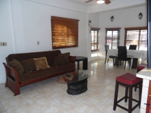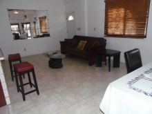 This is a spacious fully furnished 1 Bedroom apartment located on the second floor in Buttonwood Bay area of Belize City. The apartment has an open dining kitchen and living room. The bedroom is located down the hall away from the living room. The kitchen is equipped with a Stove with hood, Fridge, Coffee Maker, microwave, toaster and other small appliances. The kitchen also have two bar stool excellent for a quick breakfast. The living room has a futon that turns into a double bed. The living area is also equipped with a dolphin glass center piece and a 40inch flat screen T.V. The dining room has a beautiful 4 wooden dark piece dining table.