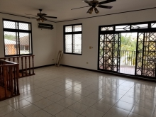 Upon entrance to the home there is a large veranda over looking the neighbourhood which is excellent to relax or have morning coffee. This apartment has an open kitchen, dining, and living that is air conditioned. The kitchen was recently renovated with local stained hardwood and has a breakfast bar. The living room is large and can easily fit a three piece sofa set. Each bedroom is fairly large with their own closet space and can easily fit a queen size bed. Three of the bedroom share one bathroom, whereas the Master Bedroom has access to its own bathroom. Three of the bedrooms are equipped with A/C.