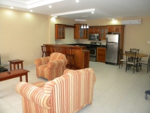 This is a beautiful and spacious 1 bedroom apartment that’s available. This apartment has a great, modern design and has stylish appliances and furniture to give it a very nice look. The master bedroom is equipped with a King Sized Bed and has access to a private balcony which offers great views of the surrounding neighbourhood and beautiful Caribbean Sea. Offering approximately 1100 sq. ft., you can rest assure that this apartment offers ample space for the everyday life of a single person or couple.