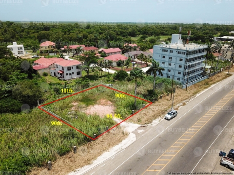 The property is measured at approximately 8,861 sq. ft. with 196ft of road frontage, 101ft of the back street and 96ft of the highway and goes in depth 90ft. The property has been cleared of its original vegetation and has been land filled. It can be accessed from the highway or the residential street at the back of the property. It also has access to all utilities and has an incomplete fence on three sides.