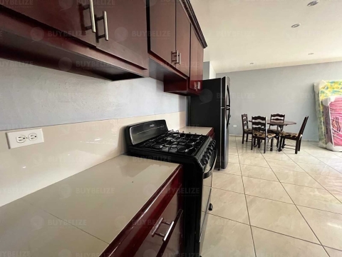 Buy Belize Management Ltd. present a 2 bed 1 bath apartment for rent located in Belize City. This apartment comes furnished with basic appliances and furniture. When entering, you’re in the open living, dining and kitchen area that once properly organized can be quite spacious for a couple or a small family. The living room is capable of holding a medium to small 3-piece sofa and television. The kitchen is equipped with a small cabinet for your dishware, countertop space, and appliances to help prepare meals. Then a 4-seater dining table can be used to have dinner with your love ones.