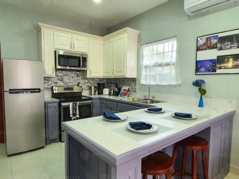 Buy Belize Management Ltd. proudly presents a newly built fully furnished apartment for rent, located in the West Landivar Area of Belize City. This is a 2-bedroom 1-bathroom upstairs apartment with an open concept living space.