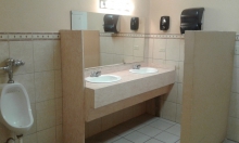 There is a long corridor that leads away from the general space. In this corridor, a small room that serves as an electrical room is found. Attached to the corridor are two bathrooms—one for each gender. The female bathroom comes with two regular toilets and a wheelchair accessible toilet. There are also two sinks. The male bathroom comes with a wheelchair accessible toilet and two urinals. There are also two sinks.