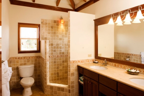 There are two master bedrooms with King Beds and they both have television. The guest bedroom has a queen size bed and the entire house has air conditioning. It has kitchen cabinets made out of our local lumber and is completely furnished with Coffee Maker, Cooking utensils, Dishwasher, Microwave, Refrigerator, Stove, washer and dryer. The house has natural stone and hardwood floors with vaulted ceilings, ceiling fans. It has custom cabinetry and granite countertops in the kitchen that gives it the modern look.