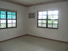 The first floor has 3 doors leading to the outside and 1 door leading to the garage. There is a kitchen and dining area, a sunken living room, an entertainment room, laundry room, bathroom and a closet/pantry. The first floor features back and side verandahs. An indoor staircase leads to the second floor. The second floor has the master bedroom (with its own AC unit), a closet and a full bathroom (which contains a Jacuzzi, shower stall, double vanity, and toilet). Also, there are two bedrooms with closets, each with a shared bathroom. There is an extra closet in the hallway and an outside verandah.