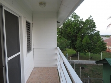 This space is the upper flat of a two storey home. It has 3 bedrooms 2 bathrooms and features an open kitchen a living room layout. The living room gives access to a small veranda thru sliding glass doors which when open fully gives way to a cool breeze throughout the house. Each flat had its designated yard space separated by a chain link fence which also offers personal separated parking.