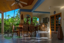 Buy Belize Real Estate is pleased to offer for sale this Luxurious Two Story Tropical Home. The main floor of this luxurious two-story home with an open plan style extends onto the covered terrace that overlooks the beautiful pool and the river. The second floor has three bedrooms with a loft and office space that leads to a balcony with a panoramic view of the town. It has a master suite with a walk-in closet and the bedrooms are very spacious and comfortable. This house is well-designed with beautiful local hardwoods including such as kitchen cabinets, closets, walk-in closets, and lots of finishings with beautiful hardwood. Outside there is a thatched outdoor kitchen that maintains a 12,000-gallon saltwater pool and splash pool. There is a two-door car garage, with a cobbled driveway with lots of parking. the luxurious home is located in town and is beautifully landscaped and surrounded by trees which give you that jungle look but is still located in the town of San Ignacio. These tall trees that surround the home are home to a large species of birds. You get that tropical feeling and coolness from the river below. You can’t ask for anything more as this will be your paradise home!!!!!