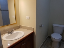 The one bedroom features a queen bed and mattress, nightstand and lamp, closet space and Chester draw with an A/C unit and access to the bathroom and private balcony. The bathroom is beautifully tiled throughout with a single vanity with storage space below and a standing shower. The apartment is near shopping stores, restaurants, gas station, banks and other businesses.