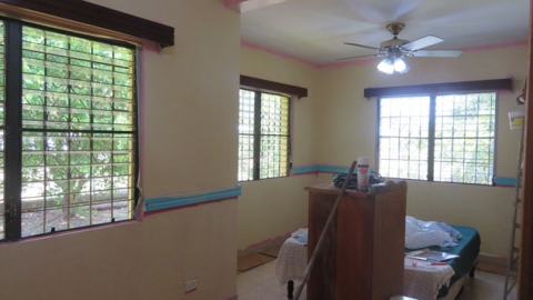 This house is located in a safe and peaceful neighborhood and comprises of 2 bedrooms 2 baths, kitchen, living room, and dining area. The kitchen consists of wooden cabinets and lockers with plenty of storage space for your kitchenware. The living area is equipped with an air conditioning unit.