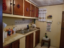 The ground floor of the house is a storage room and a cover car port for 2 cars. The house is raised roughly 10ft from the ground. The second floor has a small balcony that has the main door for the house. Upon entrance the home consist of an open dining kitchen and living room. Behind the kitchen is a laundry room that is wired for the washer and dryer. The bedrooms are large enough to fit a double bet comfortable and each consist of their own closet space. In between the two bedroom is the bathroom that has a tub.