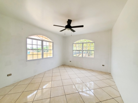 The bedrooms on the lower flat area are approximately 11 ft. in width X 14 ft. in length and the other is 12 ft. in width X 13 ft. in length. One can be used as a guest room and the other as a private office or gym. The full bath on the lower flat is approximately 5 ft. in width X 8 ft. in length and below the staircase is a storage room. This beautiful 6 bedroom, 3 bathroom house is located in a safe neighborhood in Belmopan City, fully covered and fenced, has cemented driveway and a huge yard where you can find fruit trees such as bananas, mango trees, lime trees,s and a few more.