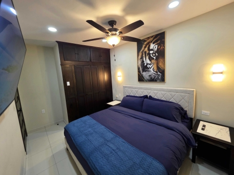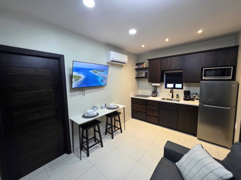 Buy Belize Management proudly introduces this strikingly modern one bedroom apartment, designed with a bold and sophisticated aesthetic. From the moment you enter, the sleek black accents set the tone creating a elegant living space that feels both stylish and comfortable.