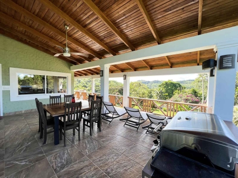 This property boasts a luxurious 3 Bed 4 Bath house, fully furnished, and equipped with all major appliances. Relax in style with an open concept kitchen, living and dining area, complete with large windows that bring the outdoors in. Tired of being inside? Step outside onto the spacious veranda and take in the stunning panoramic views of the surrounding jungle and mountains.