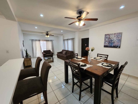Buy Belize Management Ltd. presents for rent a furnished 2 bed 2 bath apartment. The apartment is located on the Ground floor of an apartment building in a safe and quiet neighbourhood.