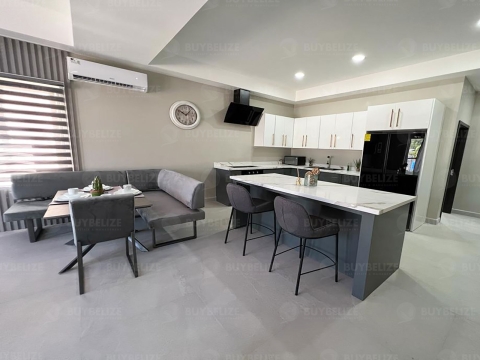 Buy Belize Management is pleased to offer this luxurious modern apartment for rent in Kings Park, Belize City. As you step inside this apartment you are welcomed with an open-concept kitchen, living and dining area offering a lovely view from the outside. One has the luxury of appreciating the scenery outside while having meals.