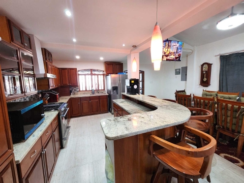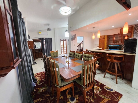 Looking for a stunning, spacious house for rent in Vista del Mar, Ladyville? Look no further! Buy Belize Management is delighted to present this beautiful and fully equipped property perfect for a large family seeking comfort, security, and convenience. This home features four bedrooms and four bathrooms, providing ample space for everyone. Located in a safe, peaceful neighborhood, the property is just a 10-minute drive from stores, schools, restaurants, and banks. As you step inside, you’ll be greeted by a modern living room, complete with a comfortable one-piece sofa set and a television. The spacious kitchen boasts mahogany cabinets, a granite countertop, and stainless steel appliances including a refrigerator, stove, microwave, coffee maker, toaster, and other essential kitchen appliances. The elegant dining area features an eight-seater dining table, perfect for family meals or entertaining guests.The well-appointed bedrooms are furnished with built-in closets, beds, drawers, and TVs, ensuring comfort and functionality. The house also comes with a washer and dryer for your convenience. Unlike most properties this one goes above and beyond with its private jacuzzi, a beautiful backyard pool, and additional amenities such as a dedicated office space, a home gym, storage area, security cameras, and a backup generator to give you peace of mind and comfort no matter the circumstances.