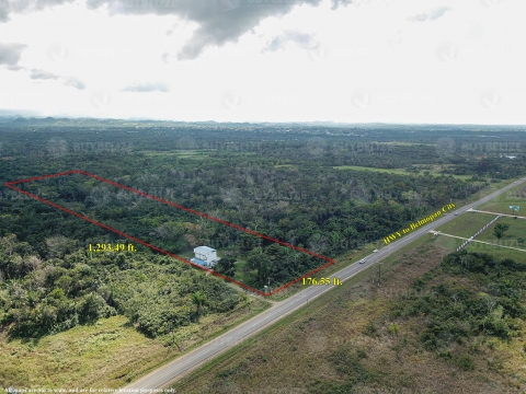 This is a corner lot measuring 5.21 acres. The property consist of 176ft of George Price Highway, and 1,293ft on the side road. The property consist of high land and a rolling slope. The property also have a pond on the property.