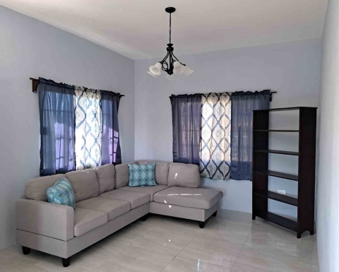 Buy Belize Management is excited to present this semi-furnished home for rent in the peaceful University Heights neighborhood of Belmopan. This modern residence boasts a welcoming open-plan concept, kitchen, dining, and living space. With the kitchen being furnished with a stove, microwave, and refrigerator, complemented by stunning granite countertops and ample wooden cabinet storage.