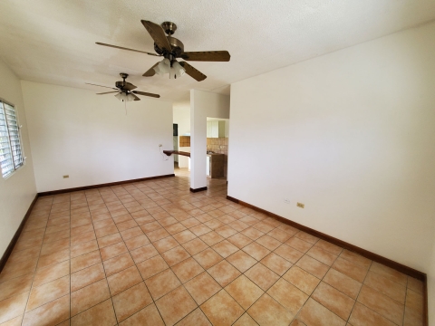 Buy Belize Real Estate LLP is pleased to offer for rent this charming tropical three-bedroom, two-bathroom house with an open-concept kitchen, living room, and dining area. Located in the Piccini/Habet Housing Area in the City of Belmopan, this home features a screened-in verandah at the rear of the property and is fully fenced, with several fruit trees on the premises. The house is equipped with fans in every room, ample closet space, and a private bathroom in the master bedroom. The entire house is tiled, and a concrete walkway leads up to the entrance. Downtown Belmopan is just a 10-minute walk away, making this an ideal family home with easy access to all amenities.