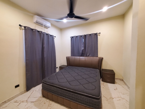 Welcome to this fully furnished contemporary home located in a quiet residential area of Belmopan City, just 5 minutes from downtown. Featuring 3 bedrooms and 2 bathrooms, this home offers an open-concept living, dining, and kitchen space perfect for modern living. The kitchen boasts sleek cabinets, and all rooms are equipped with air conditioning units for year-round comfort. Two of the bedrooms come with private ensuite bathrooms, while the third bedroom can be used as an office or additional living space. Step outside to the beautifully landscaped backyard, complete with a pergola, ideal for outdoor dining or family cookouts. The property sits on a fully fenced lot with an automated gate for added security and convenience. Don't miss this excellent rental opportunity in a prime location!