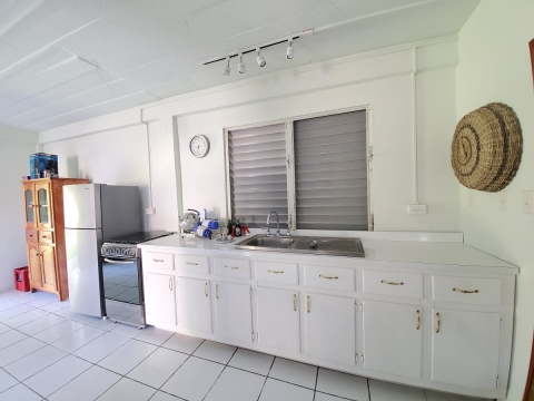 ID 3200 Buy Belize Real Estate LLP is pleased to offer for sale this cute tropical house that has one bedroom with a private bathroom, an open kitchen, a living room, dining and a laundry section on the upper floor in the Toledo District. The ground floor has a one-bedroom, one-bath open kitchen, living room, and dining studio style. At the front of the property, there is a small warehouse that stores your gardening tools and other personal items. It has a spacious large screened porch on the upper floor where you can go and relax and enjoy the tropical breeze and ambiance of nature. This property has a few fruit trees and the lot is approximately 65 feet x 100 feet and is fully fenced.