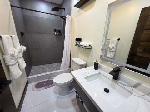 This upper floor studio apartment in Kings Park, Belize City provides not only scenic view from the balcony but also a modern, and well-designed living space featuring a fully furnished one-bedroom, one-bathroom layout, perfect for a couple or a single resident.