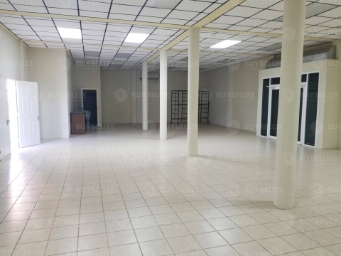 Buy Belize Management presents a large office or commercial space for rent located in Belize City. The space is measured at approximately 2,000 sq. ft and is located right on the Phillip Goldson Highway. It is also fully air conditioned by two large AC units, 2 restrooms available, parking in front of the building and a gated driveway which leads to the back entrance of the building. It fully tiled and have plenty of lighting. It also has pull down metal shutters for the front main entrance.