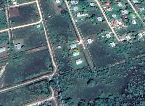 Buy Belize Real Estate LLP presents three lots for sale located in Hattieville Village. Each property has a bungalow house with a gross floor area of 1,008 sq. ft. Each house contains 3 bedrooms, 1 bathroom with an open living, dining, and kitchen spaces. The structures are fully tiled, plastered and painted. Each property is approximately 6,750 sq. ft. or 75’x90’.
