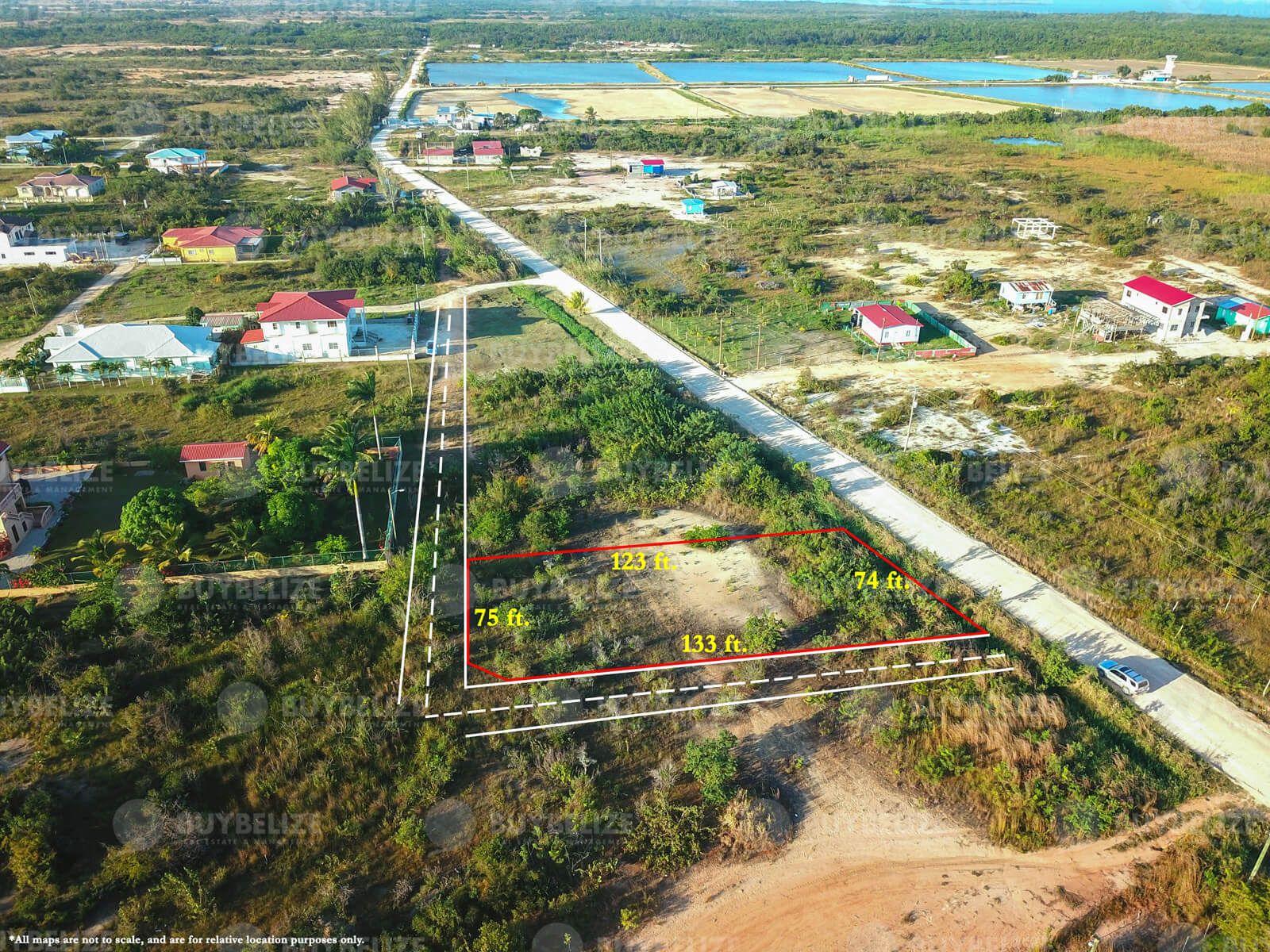 The property is measured at approximately 9,449 sq. ft. and has 282 ft of road frontage due to it being a corner lot that can be accessed from three different streets. The land is located in a high and dry area of Ladyville and does not require much landfill, but it has been cleared of its original vegetation. There is also access to all utilities. Directly next to this property, there are also two more properties are available for sale. Each lot is priced to sell at $30,000 USD.