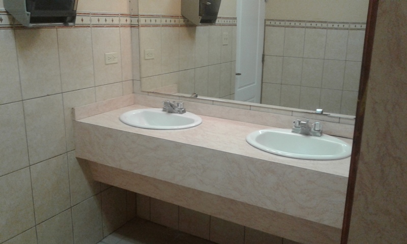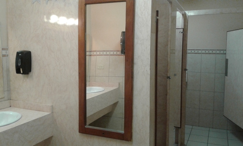 There is a long corridor that leads away from the general space. In this corridor, a small room that serves as an electrical room is found. Attached to the corridor are two bathrooms—one for each gender. The female bathroom comes with two regular toilets and a wheelchair accessible toilet. There are also two sinks. The male bathroom comes with a wheelchair accessible toilet and two urinals. There are also two sinks.