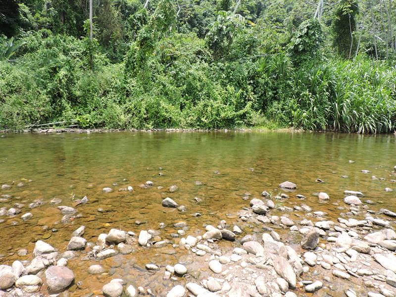 This large parcel of land has 60 acres of vacant land and mostly still in its natural state. The land comes with a river and creek that can be utilized for farming. Because it is still in its natural state, the land is overgrown with knee-high grass and a few small and tall trees scattered across the green expanse. The lie of the land is slightly hilly and is surrounded by large mountains, allowing for scenic views. The land has approximately 20 acres of lime trees and another 30 is occupied by Teak.