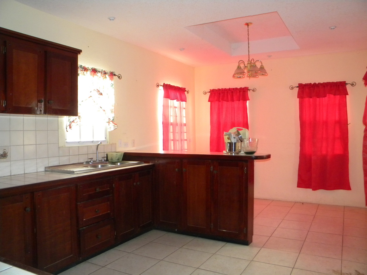 This is a lovely 4 Bedroom, 2 ½ Bathroom house for sale. This concrete, bungalow house is designed with a cathedral ceiling. It has the living room and a sunken den in an open layout apart from the kitchen and dining area. The master bedroom has a walk-in closet. There is a double garage with its own remote control openers. The lot measures approximately 100 ft. x 120 ft. and is fully fenced. The house measures approximately 3,000 square feet. The side gate leading from the garage is also electronic and has its own remote control opener. This property is located in a quiet residential area in Ladyville.Selling Price: US$180,000.00