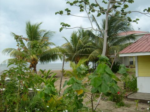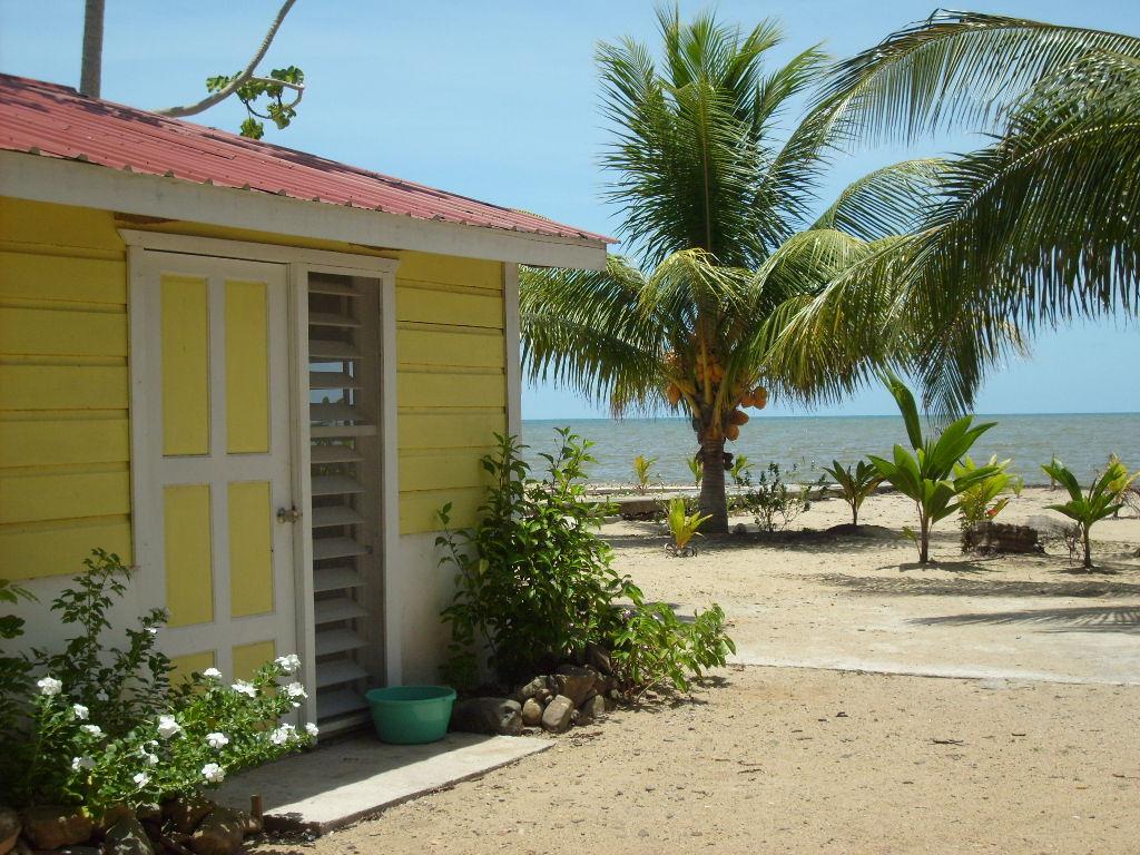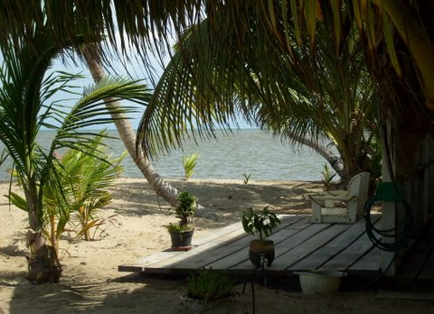 Outside we have a sandy beach garden. There is a new sea wall along the entire lot; we also have a small dock. 300 yards further along the beach is a small Belizean run fishing resort. Next door to us on our south boundary lives a local family in a small wooden house. Apart from that, we have the beach to ourselves.