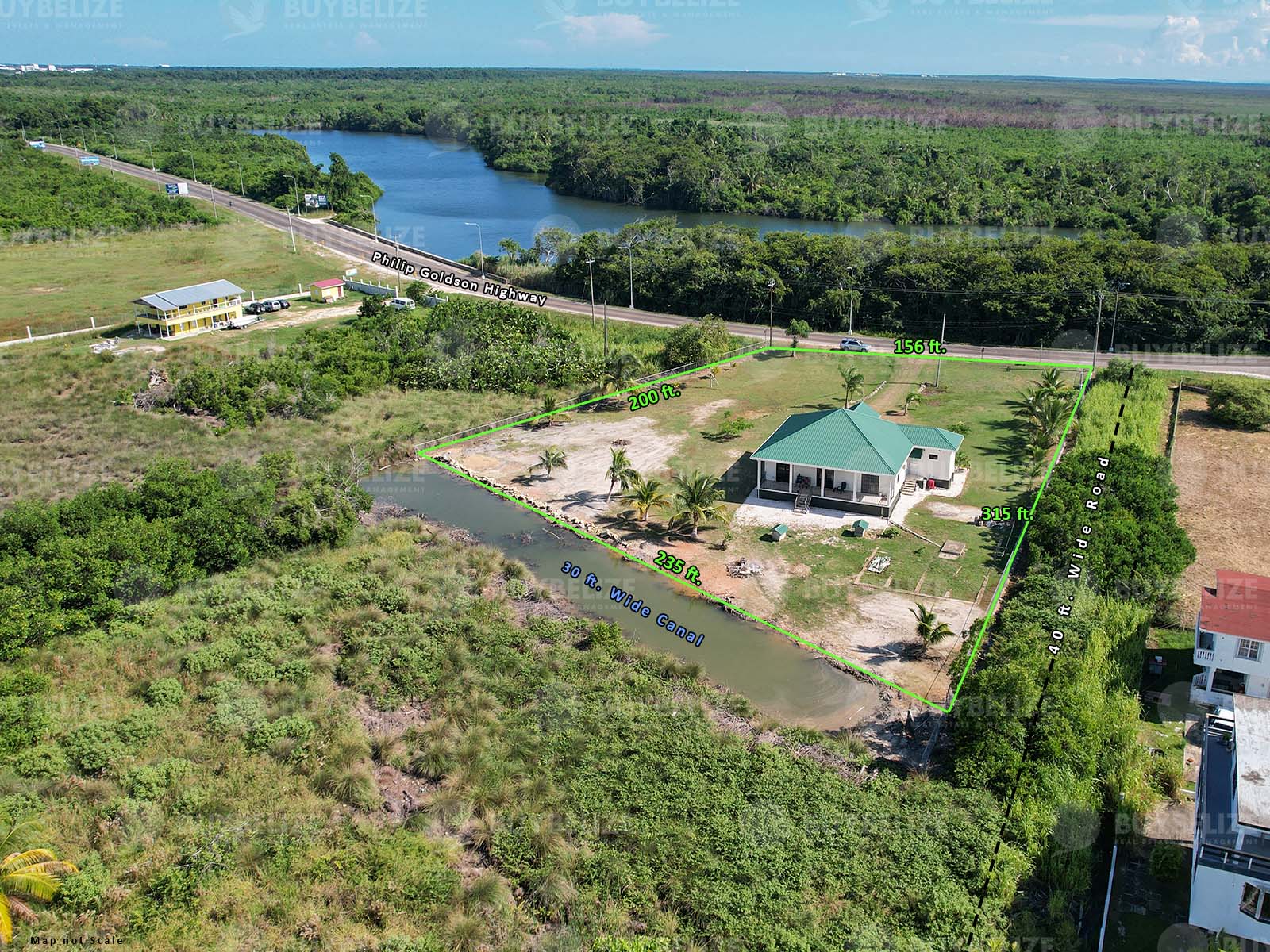 Buy Belize Real Estate is pleased to offer you this gorgeous home located on the Philip Goldson Highway, Belize District. This beautiful home is situated in an ideal location as it is right on the highway and approximately an 11-minute drive to Belize City. This spacious modern home sits on a large lot measuring approximately 1.09 acres and is right next to the sea. The property also has a canal behind the lot where you have access to come in and park your boat. Excellent location for you and your family to go and adventure out and go fishing, enjoy the scenic views, and have boat rides whilst roaming in the crystal-clear sea. Let this be your dream modern home and enjoy the exquisite views of this gorgeous home.