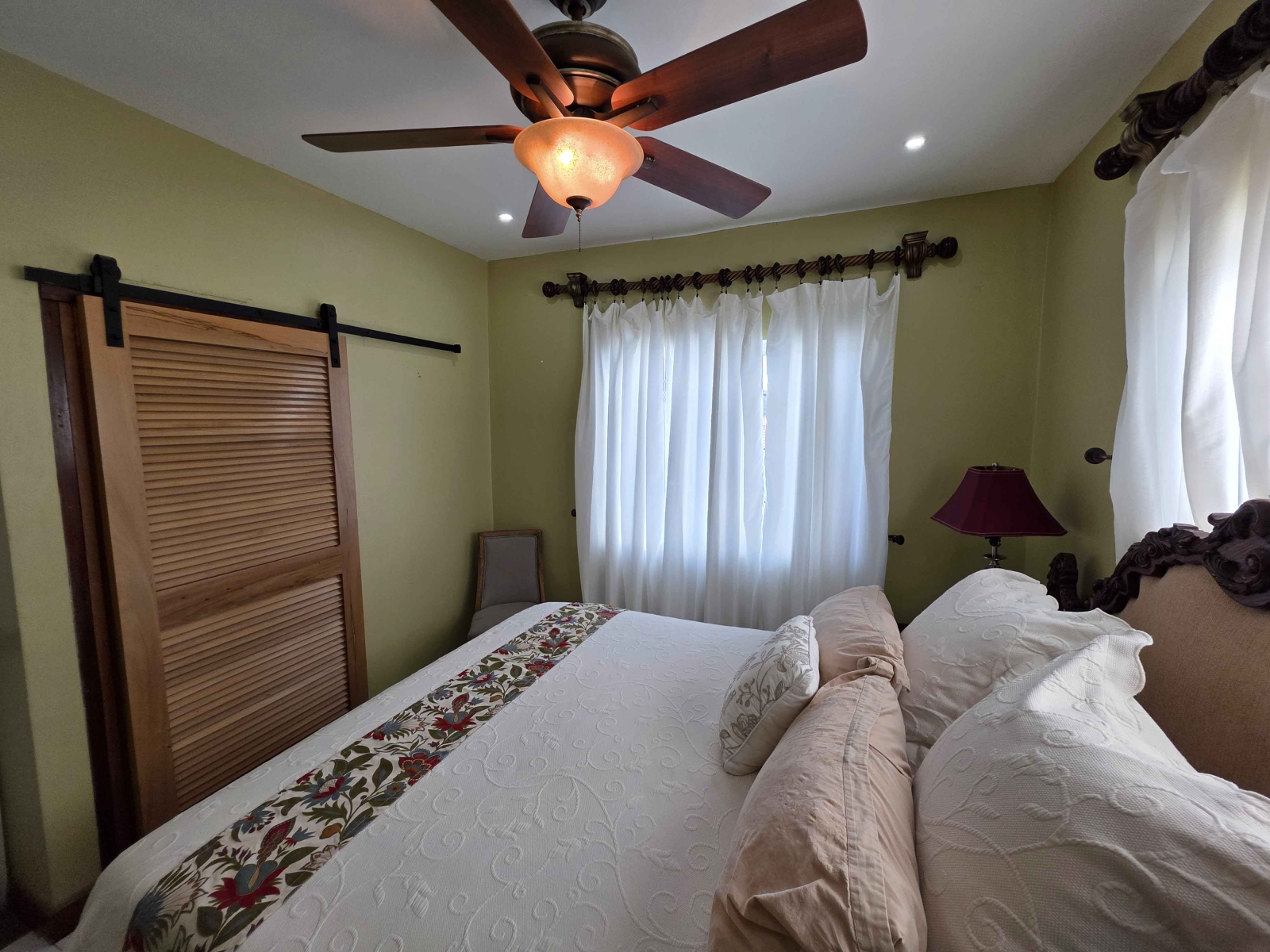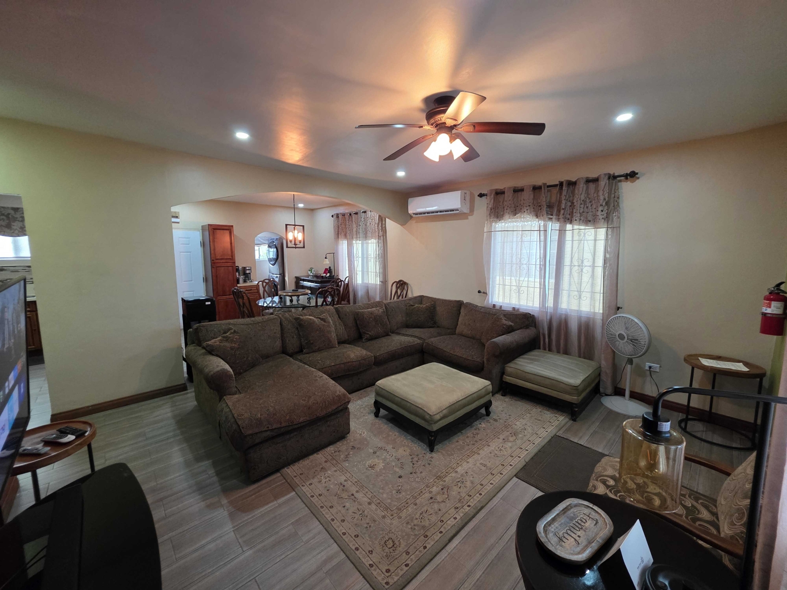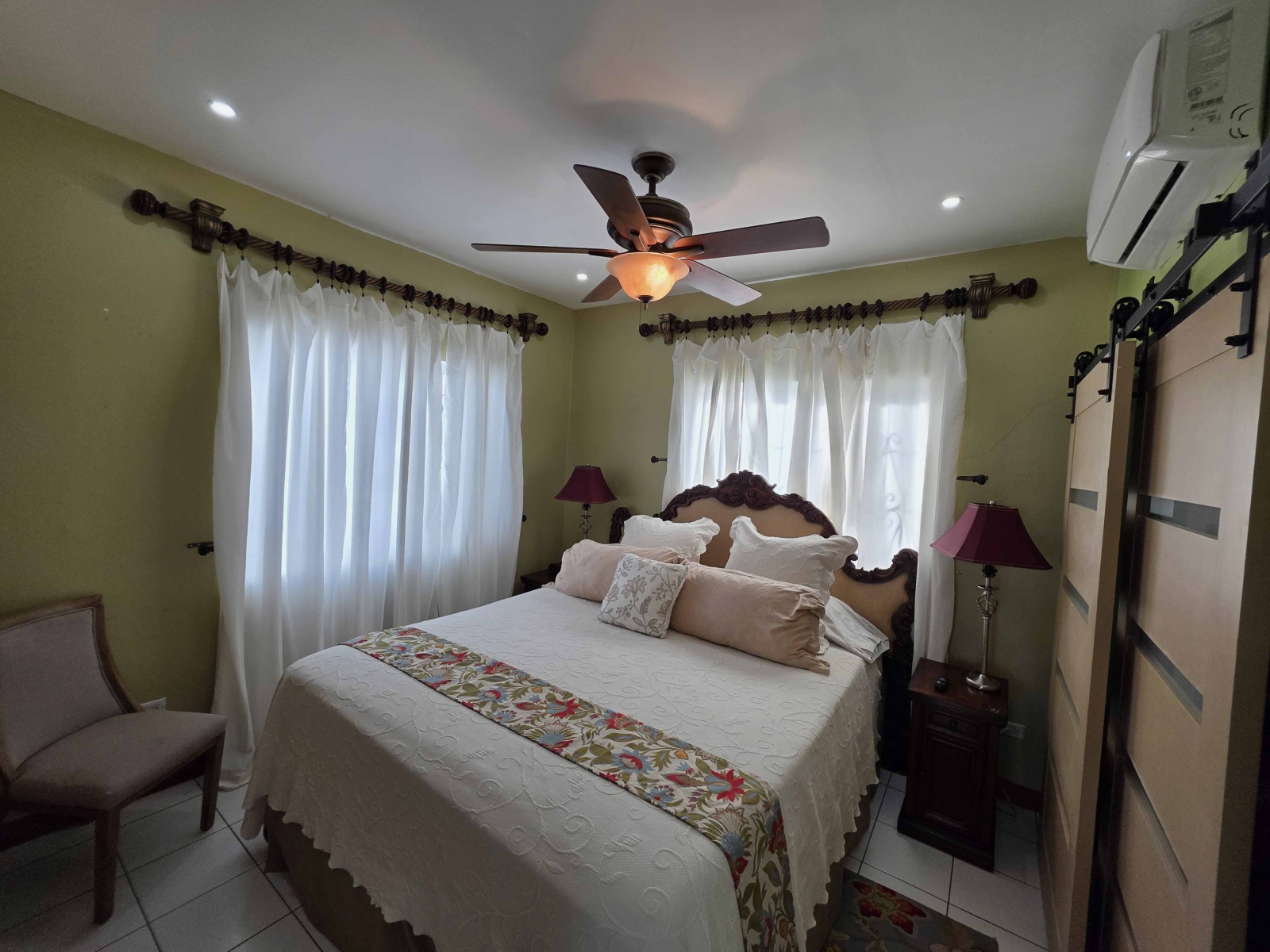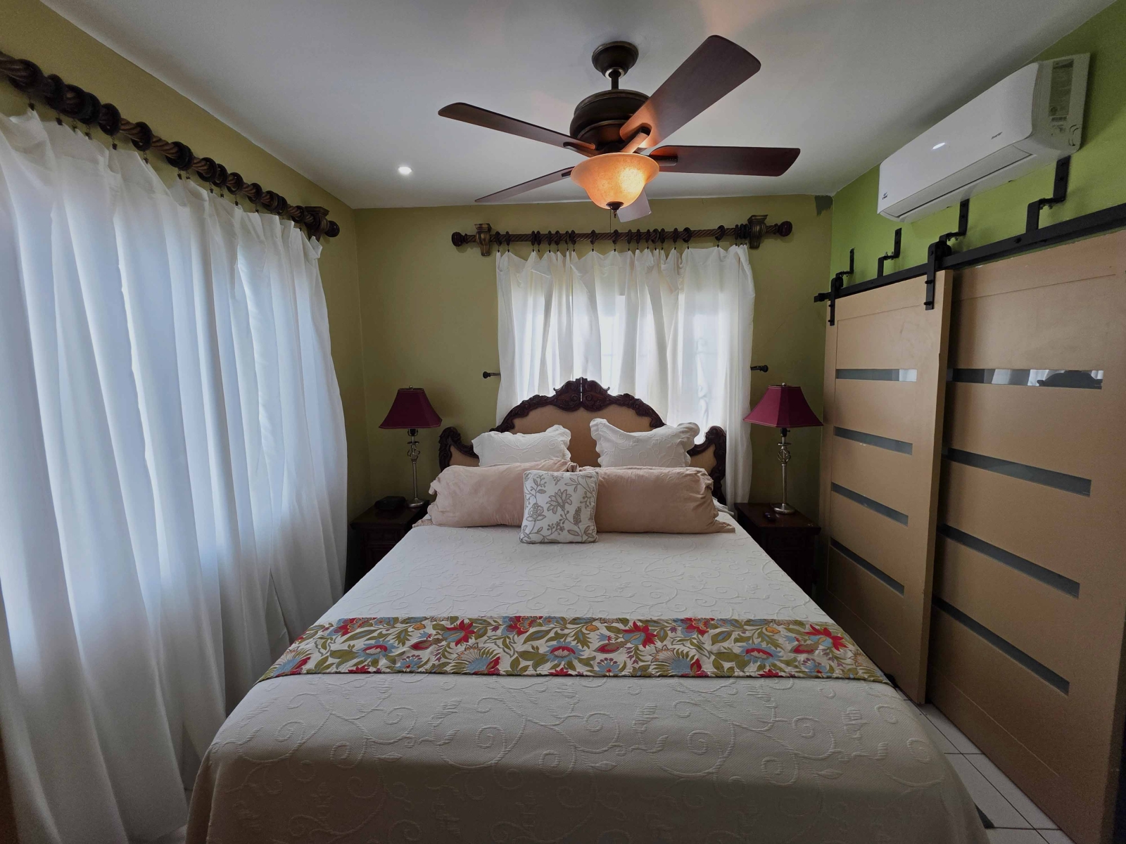 Looking for a large 1,300 sq ft apartment for your family while vacationing in Belize, then this location is for your family. This home consists of 3 large bedrooms and 2 bathrooms. The Master Bedroom consist of a King Size Bed and is air conditioned. The Master Bedroom consist of its own closet space and private bathroom with a standing shower. The second and third bedroom both consist of Queen Bed with their closet space and are air conditioned. The guest bathroom is large and have a large shower stall.