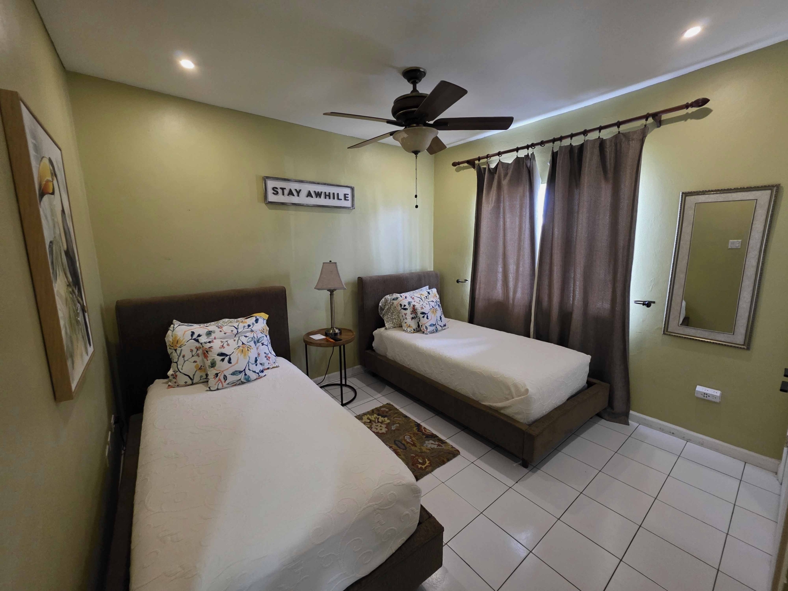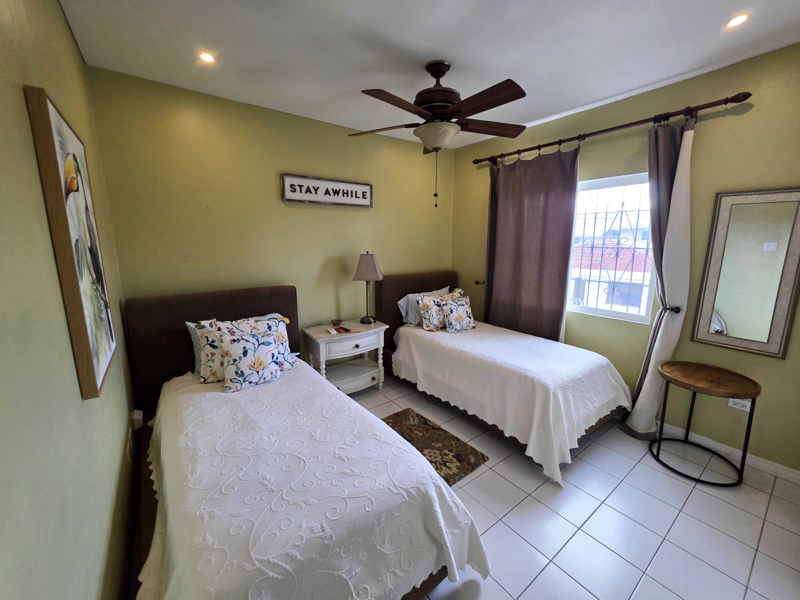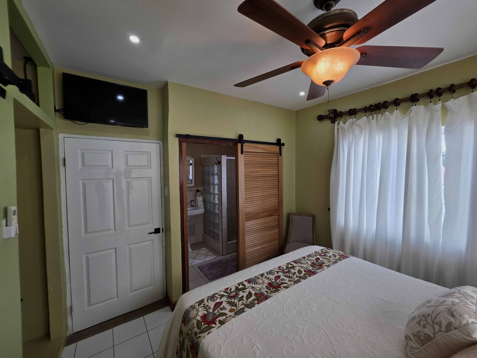Looking for a large 1,300 sq ft apartment for your family while vacationing in Belize, then this location is for your family. This home consists of 3 large bedrooms and 2 bathrooms. The Master Bedroom consist of a King Size Bed and is air conditioned. The Master Bedroom consist of its own closet space and private bathroom with a standing shower. The second and third bedroom both consist of Queen Bed with their closet space and are air conditioned. The guest bathroom is large and have a large shower stall.