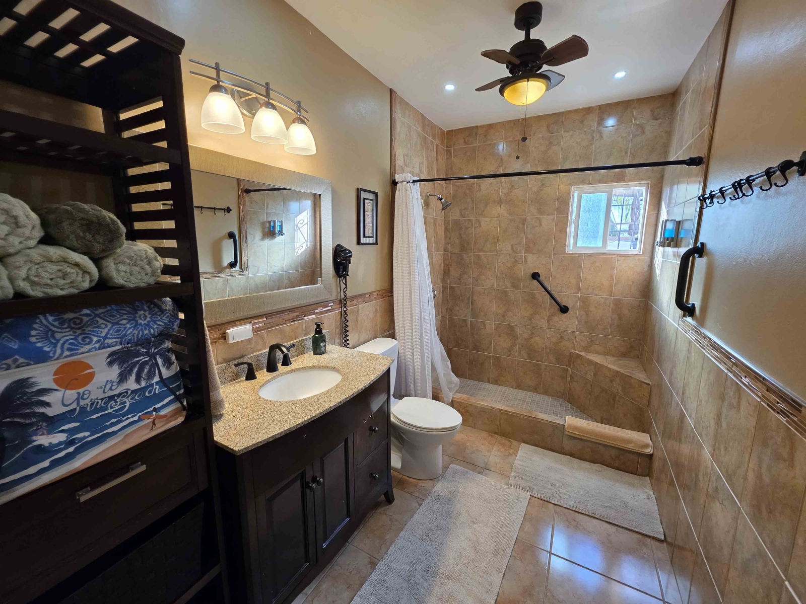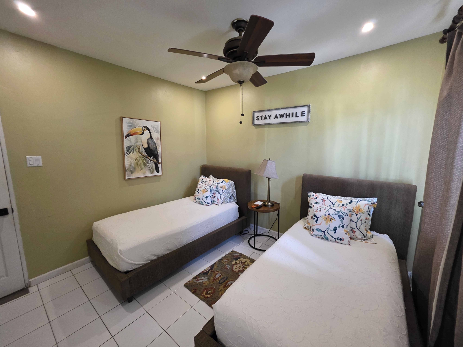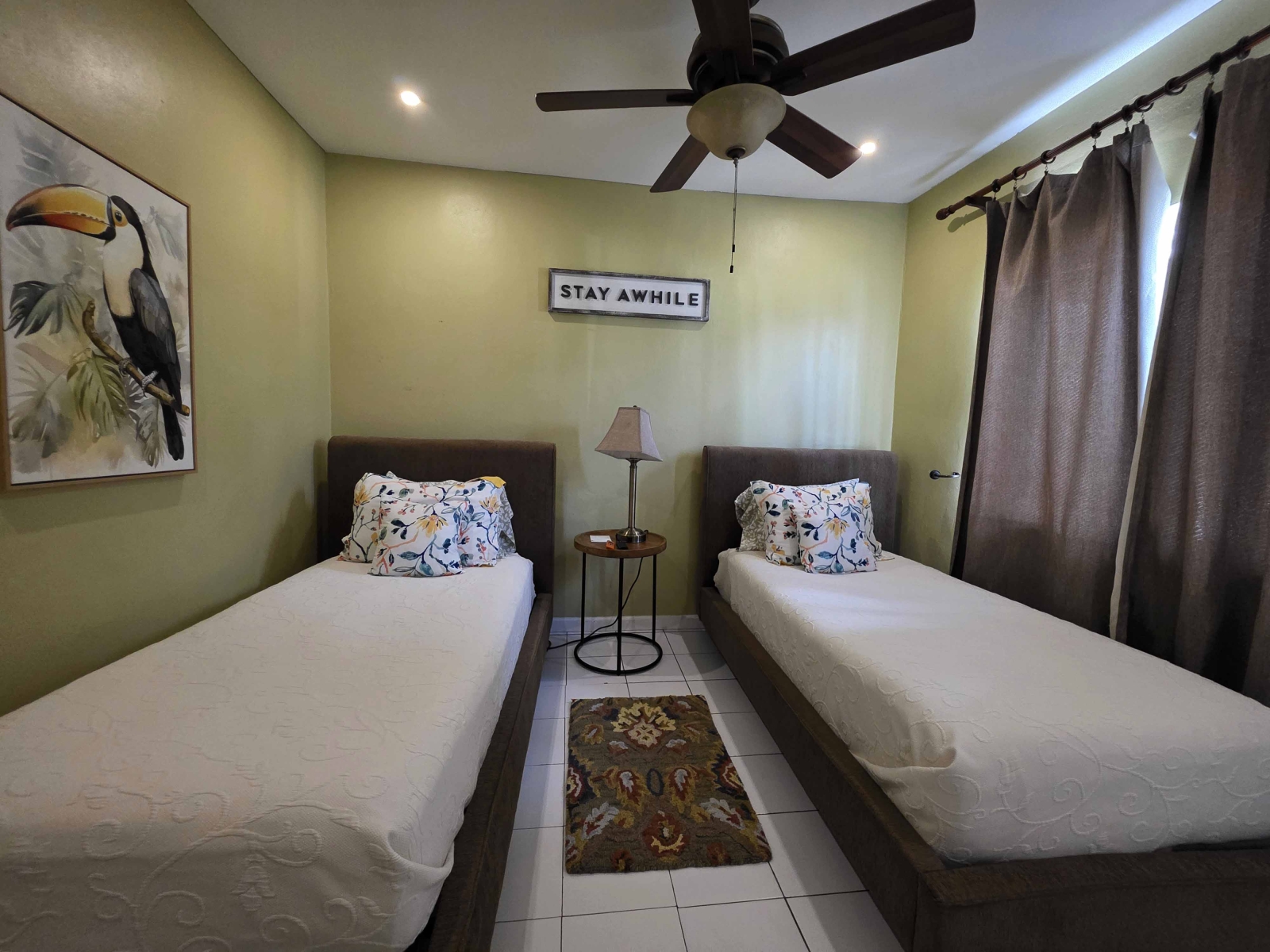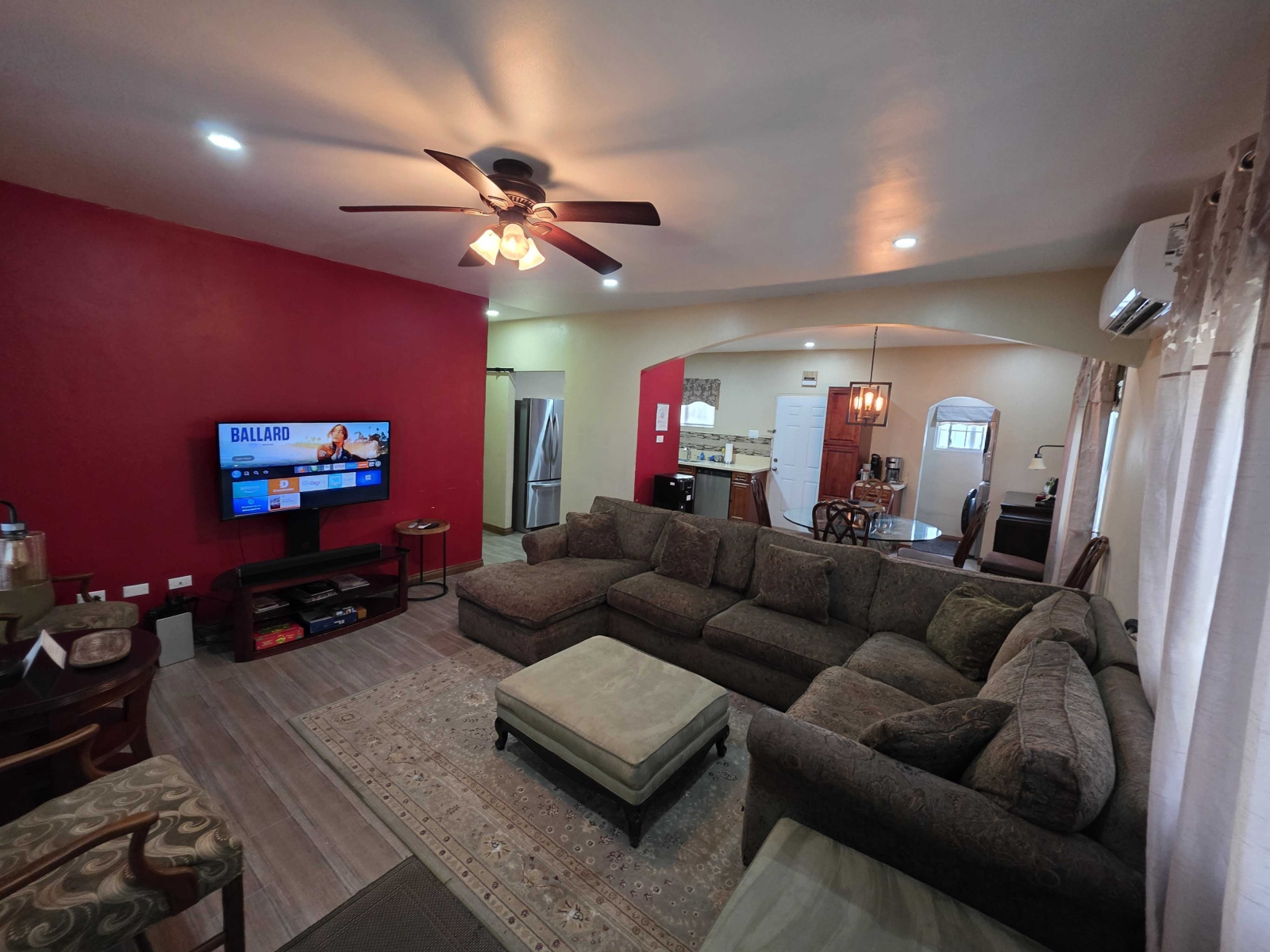 Looking for a large 1,300 sq ft apartment for your family while vacationing in Belize, then this location is for your family. This home consists of 3 large bedrooms and 2 bathrooms. The Master Bedroom consist of a King Size Bed and is air conditioned. The Master Bedroom consist of its own closet space and private bathroom with a standing shower. The second and third bedroom both consist of Queen Bed with their closet space and are air conditioned. The guest bathroom is large and have a large shower stall.