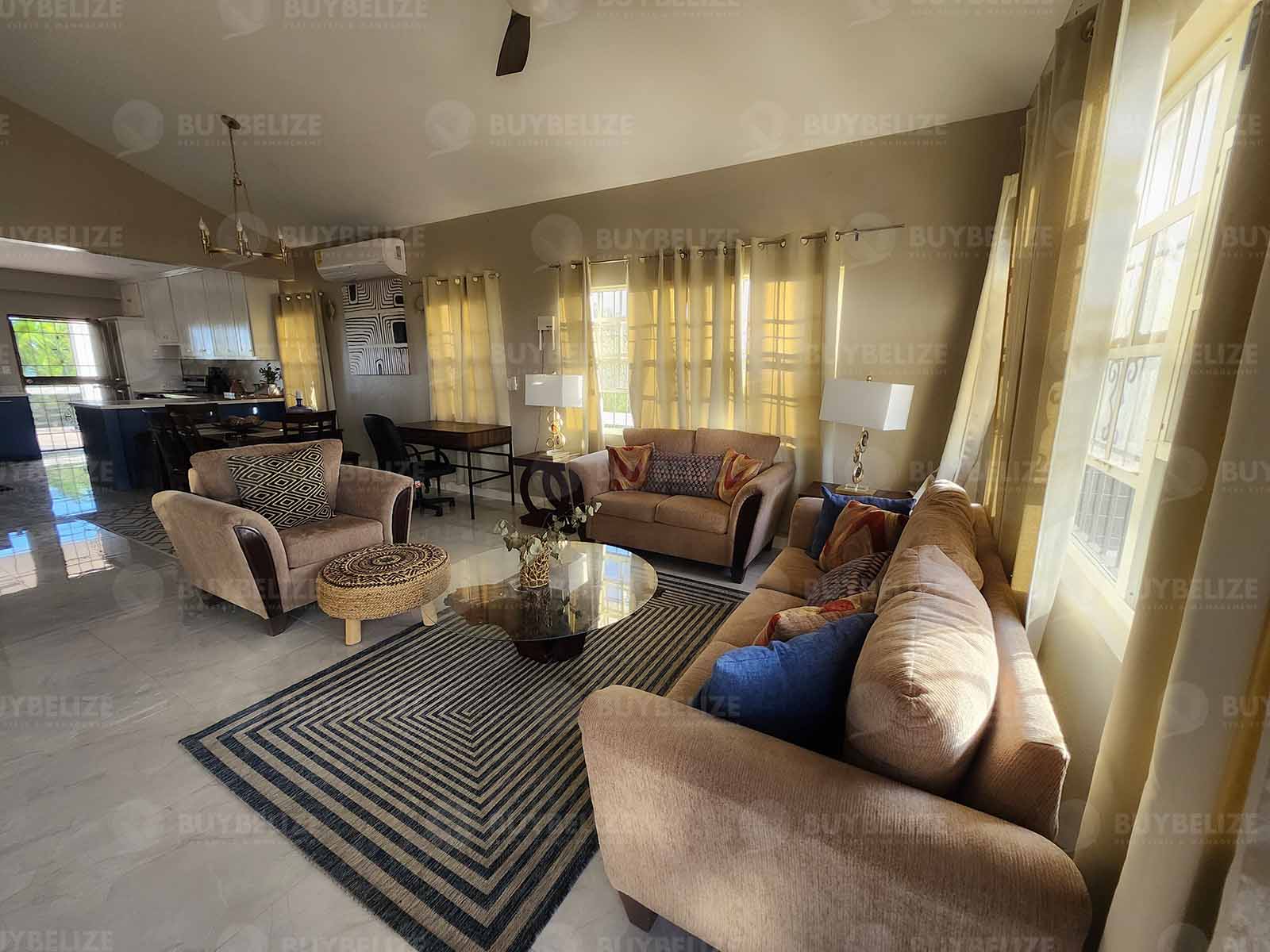 Buy Belize Management is pleased to offer this three-bedroom two-bathroom house located in this peaceful area of Vista Del Mar. This home is being rented fully furnished the ideal residential home for a large family.