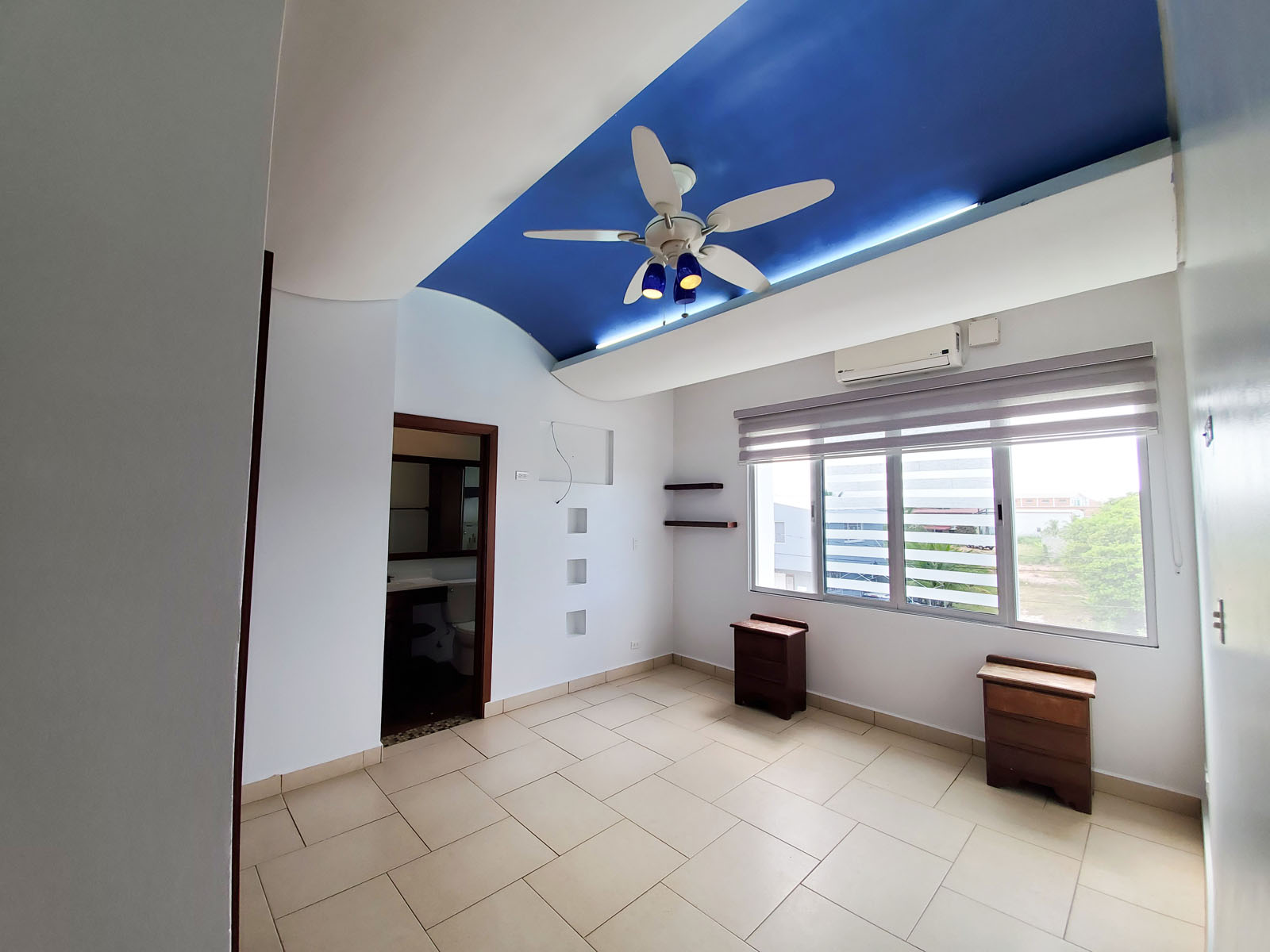 The apartment has an open dining, kitchen, and living room with hallway access to the three bedrooms and the backdoor. The kitchen comprises beautiful local hardwood with granite countertop along with local hardwood shelf cabinets. Bedroom 1 and Bedroom 2 both have their own closet space and can comfortably fit a queen-sized bed with space for other furniture. The Master bedroom has a walk-in closet and can comfortably fit a king-sized bed and other furniture. This bedroom has access to its private full bathroom.
