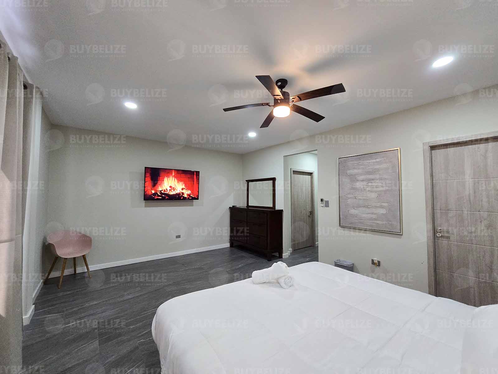 A huge master bedroom with his and her vanities and walk in closets. A King size bed would ideally fit perfect in the Master bed.